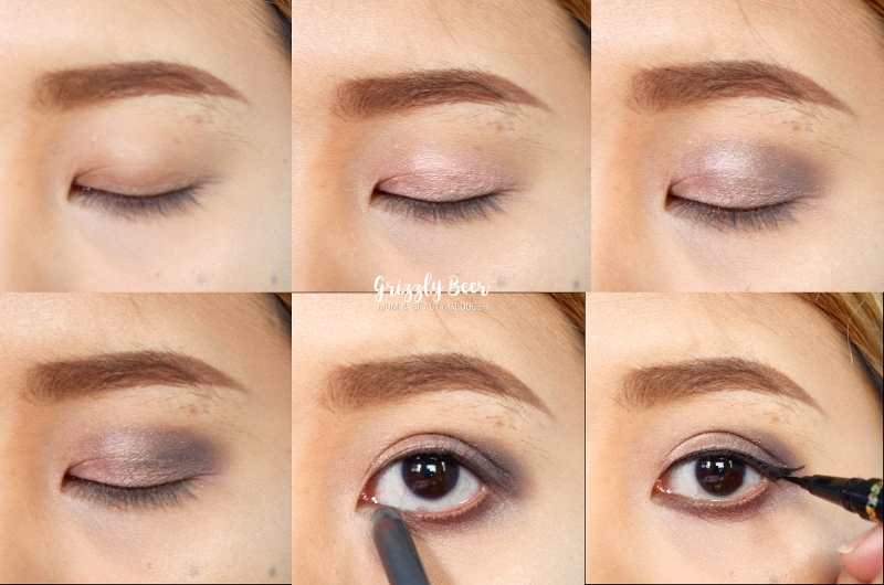 - จากนั้นคัดเบ้าด้วยอายแชโดว์สีเทา และใช้สีดำเบลนด์ทับอีกรอบให้ดูเข้มขึ้น