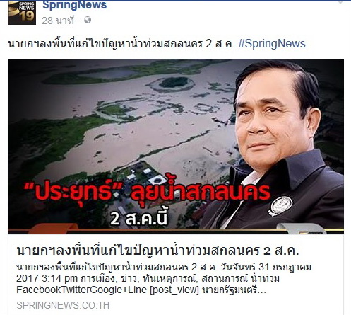 วันพุธที่ 2 สิงหาคม 2560 นายกลุงตู่ จะลงไปพบปะประชาชน ชาวสกลนคร