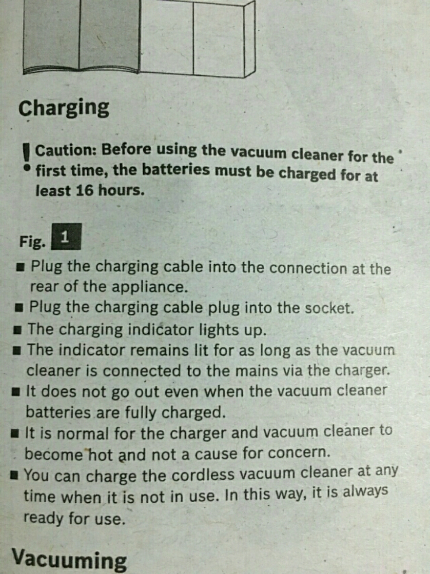 it does not go out even when the vacuum cleaner batteries are fully charged แปลว่าอะไรครับ