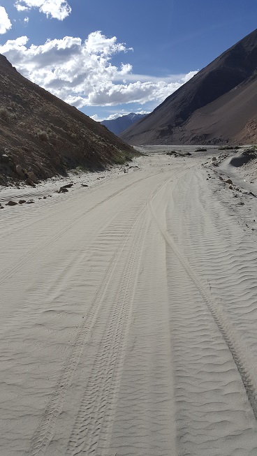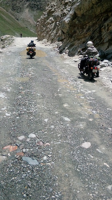 สภาพเส้นทางส่วนใหญ่ทุกที่กว่า 70-80% (วิบากกรรม) เป็นทางกำลังทำถนนทั้งสิ้นสภาพคล้ายๆกันตลอดทริปคือ เป็นดิน+หินแน่นๆขรุขระ เป็นฝุ่น และมีทราย หรือโคลนเล็กน้อยบางจุด แล้วมีน้ำซึ่งมาจากหิมะละลายเป็นน้ำตกเล็กๆให้ข้ามผ่านตลอด ถนนเป็นเลนเดียวส่วนใหญ่ โค้งจะมุมอับ ต้องใช้แตรช่วยตลอด เพราะเราจะจ๊ะเอ๋รถเสมอ จนต้องขี่ตกขอบทางเป็นเรื่องปกติ เราจะได้ทักษะการใช้แตรเลเวล1 กลับมา จะแซงแต่ละทีก็ต้องใช้แตรไม่งั้น รถไม่ยอมให้แซง ความเร็วที่เราใช้เส้นทางนี้อยู่ประมาณไม่เกิน 40-60 km./hr