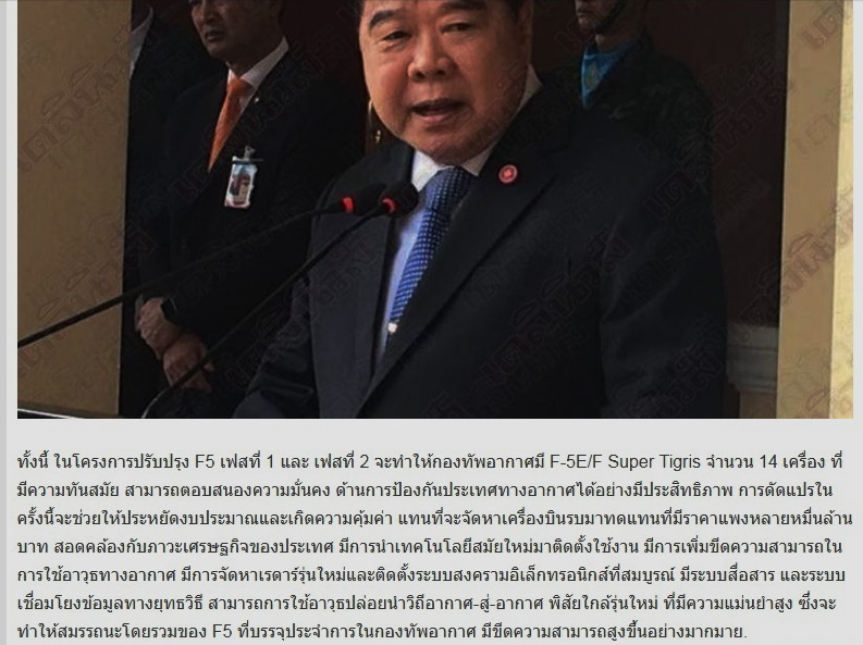 ไทยนี้รักสงบ แต่ถึงรบไม่ขาด บิ๊กป้อมส่งเรื่องชง ครม. ขออนุมัติ 3 พันล้าน อัพ F5 จำนวน 4 เครื่อง