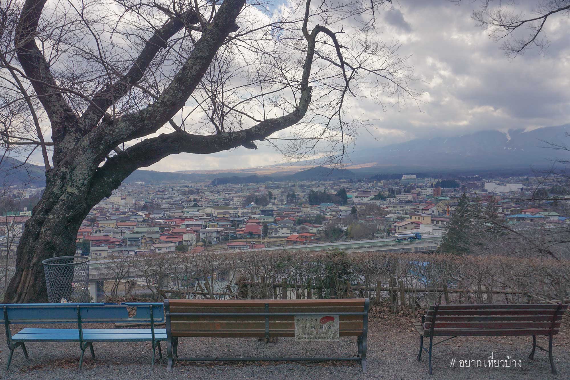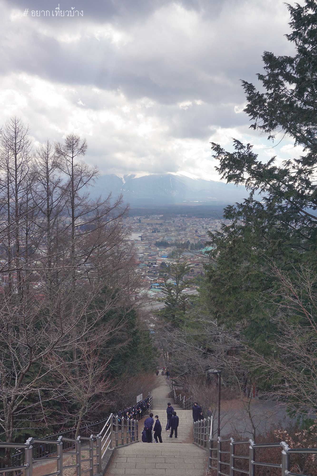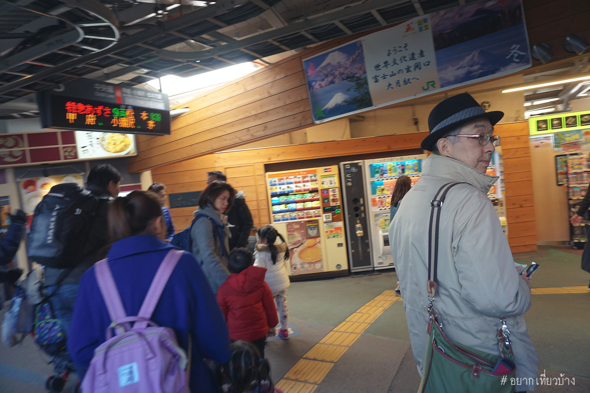 ถึง Kawaguchiko Station รีบเดินไปถ่ายรูปมุมมหาชนหน้าสถานี พอหันหลังกลับมาแค่นั้นแหละ เมฆบังมิด จบข่าว เศร้านิดหน่อยได้แต่หวังว่าสักพักเมฆน่าจะหายไป ช่วงรอรถไฟที่เราจะไป เจดีย์แดง(Chureito Pagoda) ก็หามุมเดินเล่นรอบๆสถานี Kawaguchiko ครับ