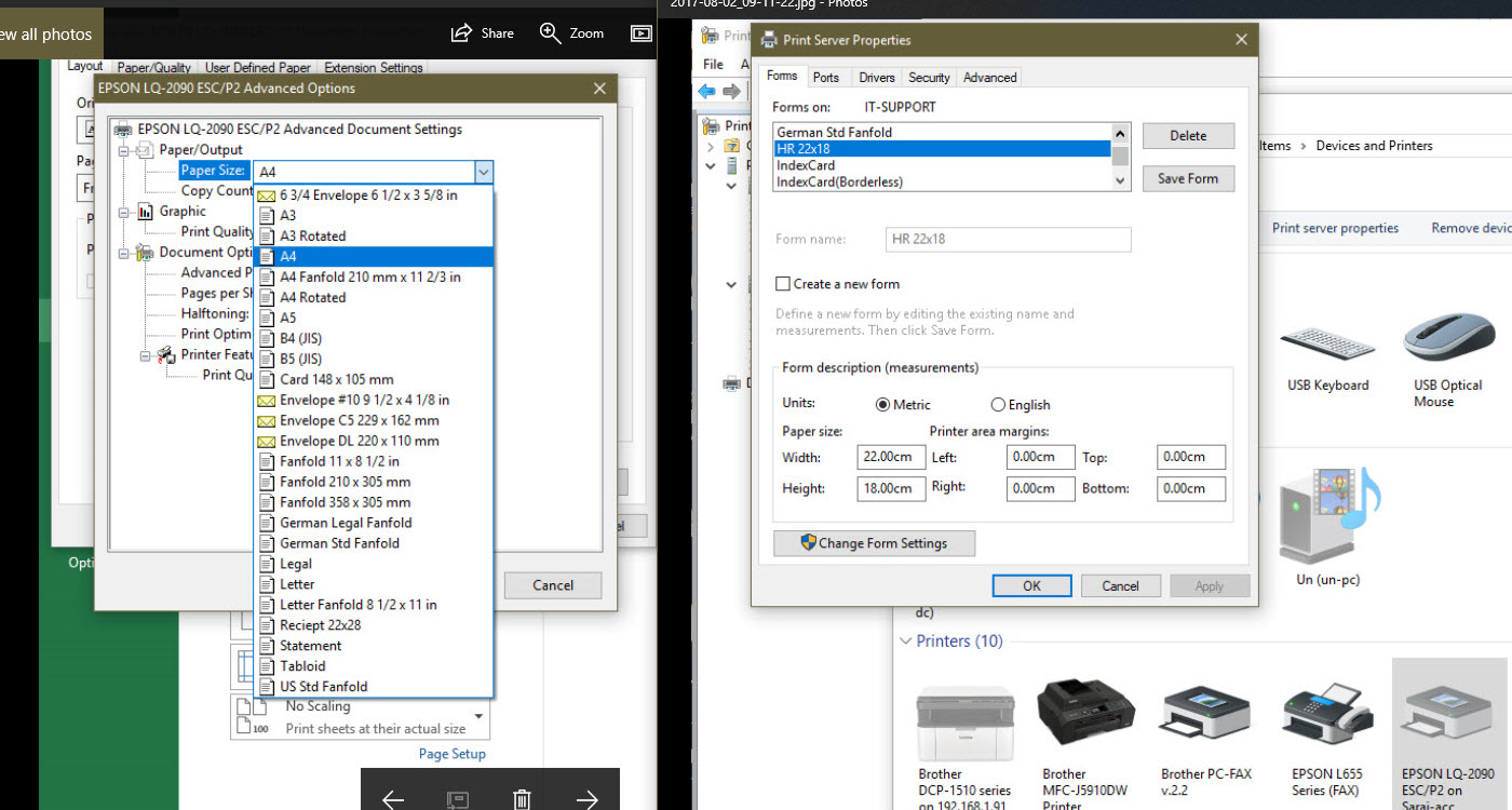 ขอปรึกษาครับ คือผมใช้เครื่องพิมพ์ดอต Epson LQ-590 มีฟอร์มที่ต้องพิมพ์ลงการดาษต่อเนื่องขนาด 9x5.5 ผมได้เข้าไปสร้างไซส์กระดาษใหม่ใน print server properties กำหนดชื่อคือ 9x5.5 เรียบร้อย เวลาสั่งพิมพ์ก็ม