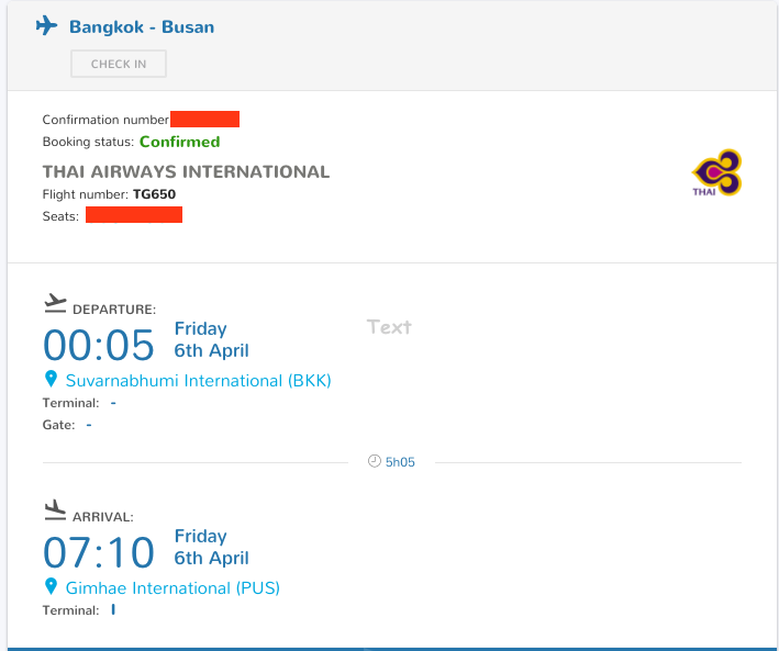 เนื่องจากเราเพิ่งจองตั๋วเครื่องบินเองครั้งแรก จึงสับสนเวลาเล็กน้อยค่ะ โดยเราต้องการที่จะไปถึงปูซานเช้าวันที่ 6 เมษายน เช็คอินคืนวันที่ 5 เราจองถูกแล้วใช่มั้ยคะ เราเข้าใจว่าถูก แต่เพื่อนที่ไปด้วยทักเราว่าเราจองผิดหรือเปล่า เราจึงสับสนค่ะ