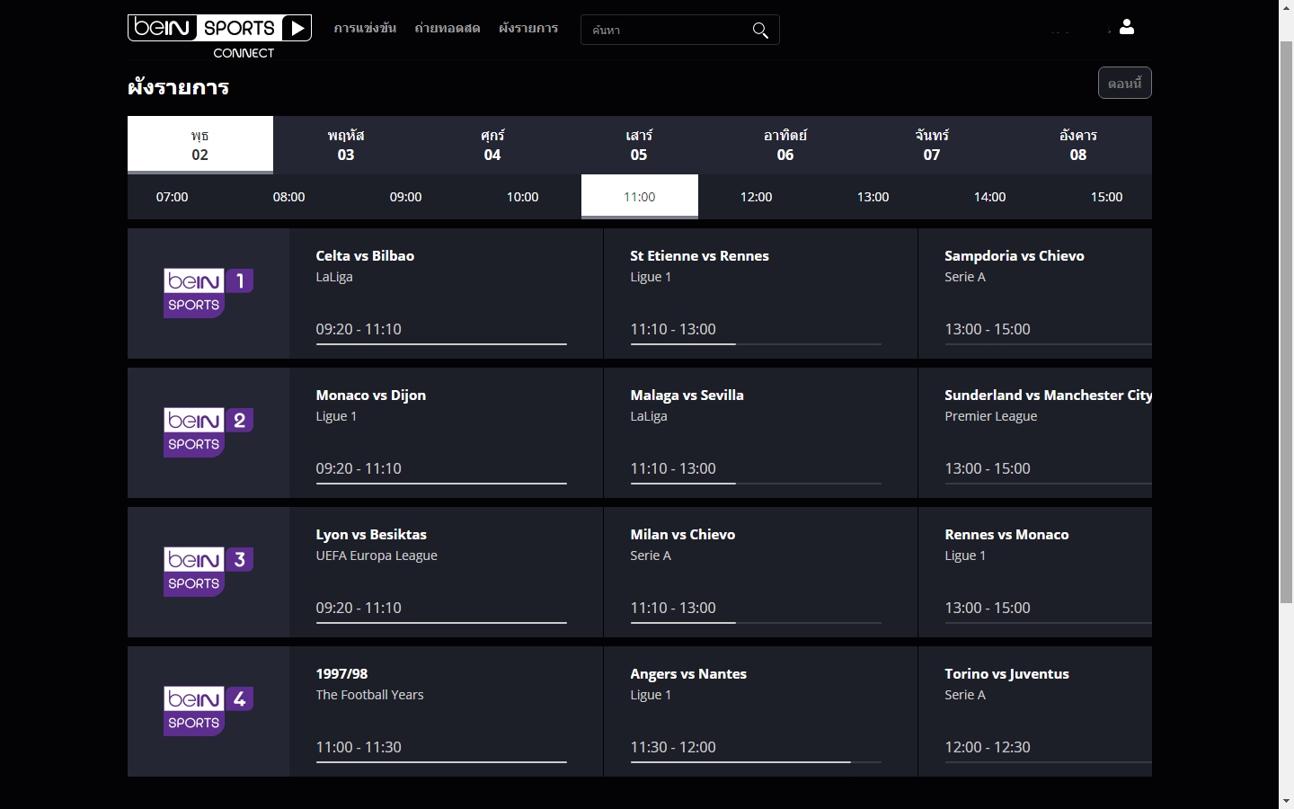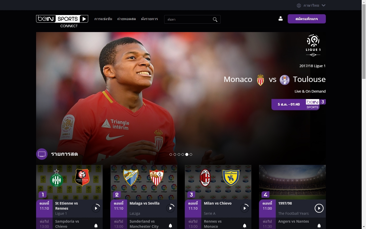 สวัสดีครับ ขอแนะนำบริการ beIN Sports Connect ซึ่งแพร่ภาพรายการแข่งขันฟุตบอล การแข่งรถยนต์ และกีฬาอื่นๆ ผ่านอินเตอร์เน็ตครับ