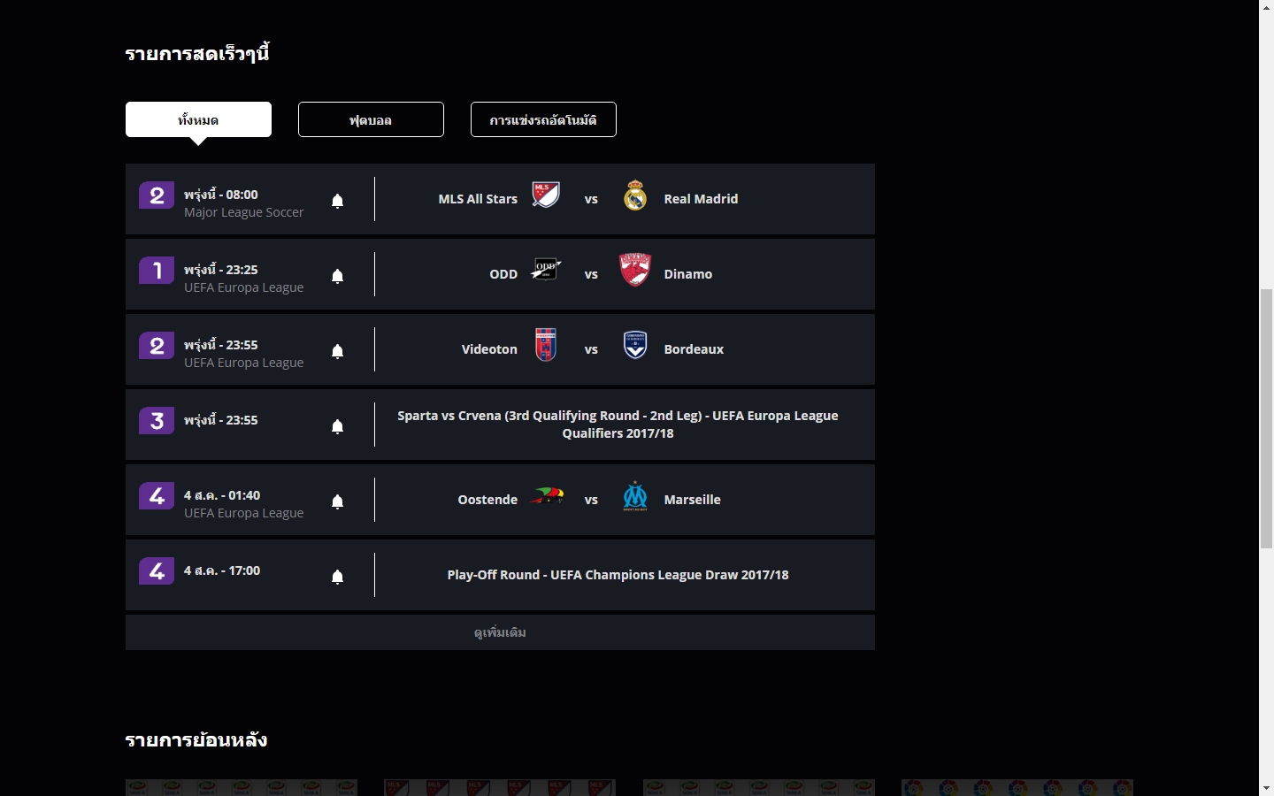มีรายการแจ้งล่วงหน้าด้วยครับว่าต่อไปจะมีการแข่งขันอะไร อันนี้ดีกว่าระบบเดิม ถ้าท่านกลัวว่าจะลืมดู คลิกที่ไอค่อนรูประฆังได้เลยครับ แล้วระบบจะแจ้งเตือน