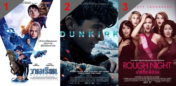 อันดับ 1 : Valerian and the City of a Thousand Planets เรื่องราวของอวกาศอันกว้างใหญ่ไพศาล มีนครพันพิภพ กับงานสร้างยิ่งใหญ่ตั้งแต่ฉากเปิดเรื่องไปจนจบมีการดีไซน์ที่อลังการ แปลกใหม่ ส่วนของงาน CG ก็ทำออกมาได้ดี ตลอดจนดนตรีประกอบที่นำมาใช้สื่ออารมณ์ของตัวละคร