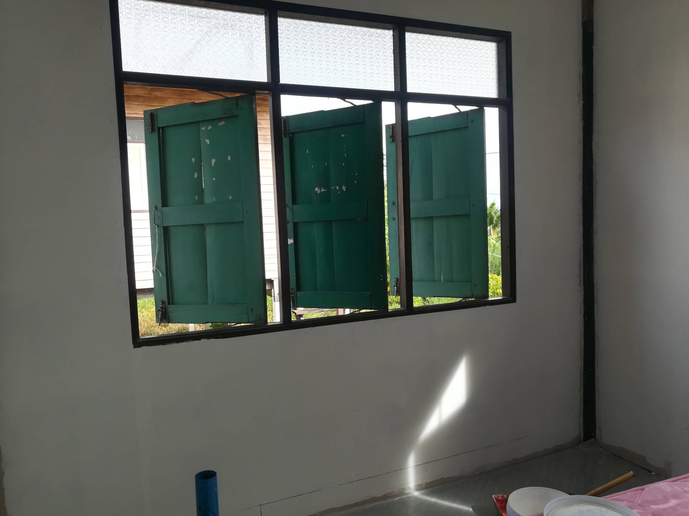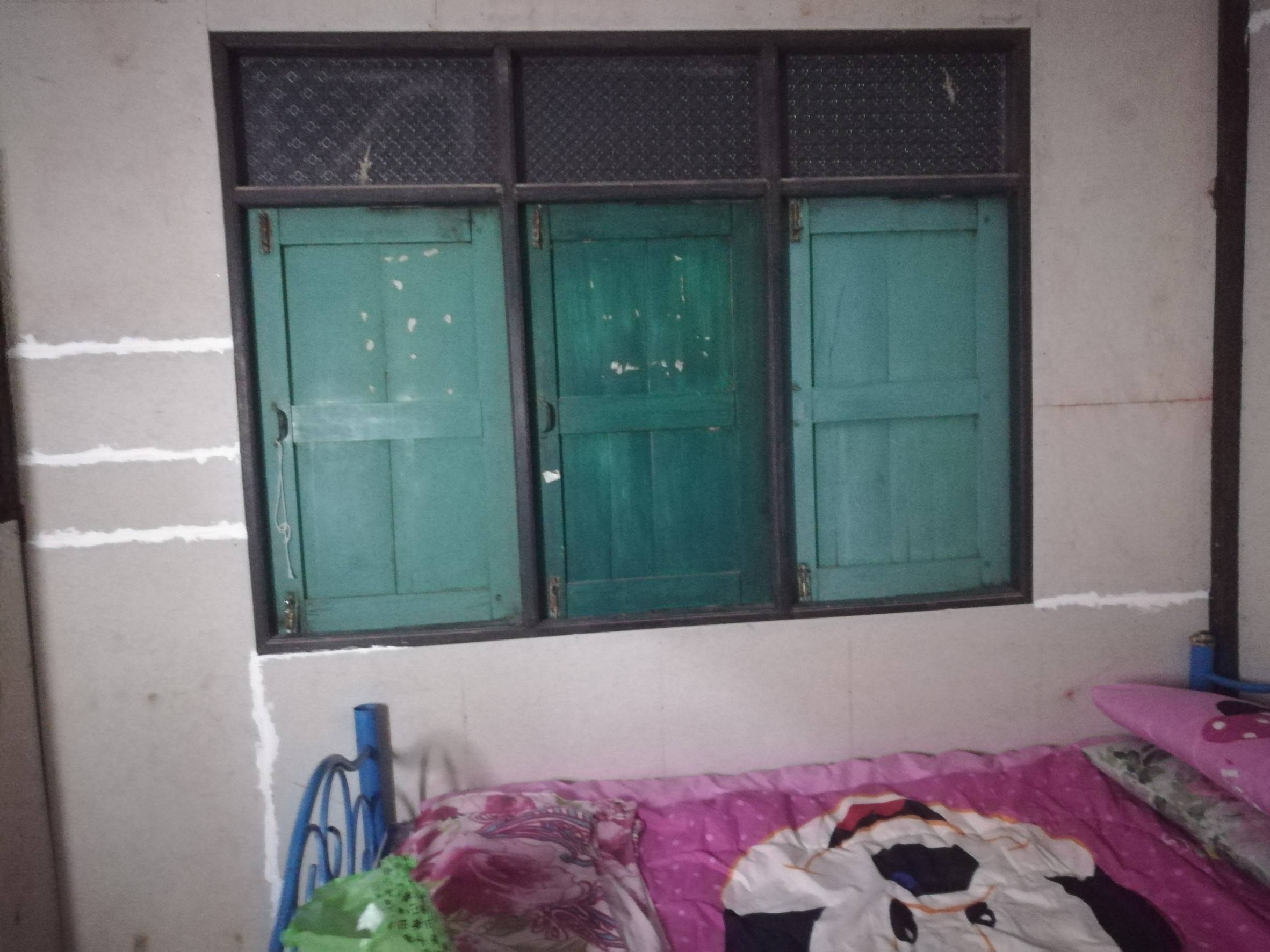 ส่วนหัสเตียงเดิมเป็นหน้าต่าง 3 บาน เราให้พ่อช่วยปิดเหลือ 2 บานเพราะอยากให้หัวเตียงมันเรียบๆ สบายตา