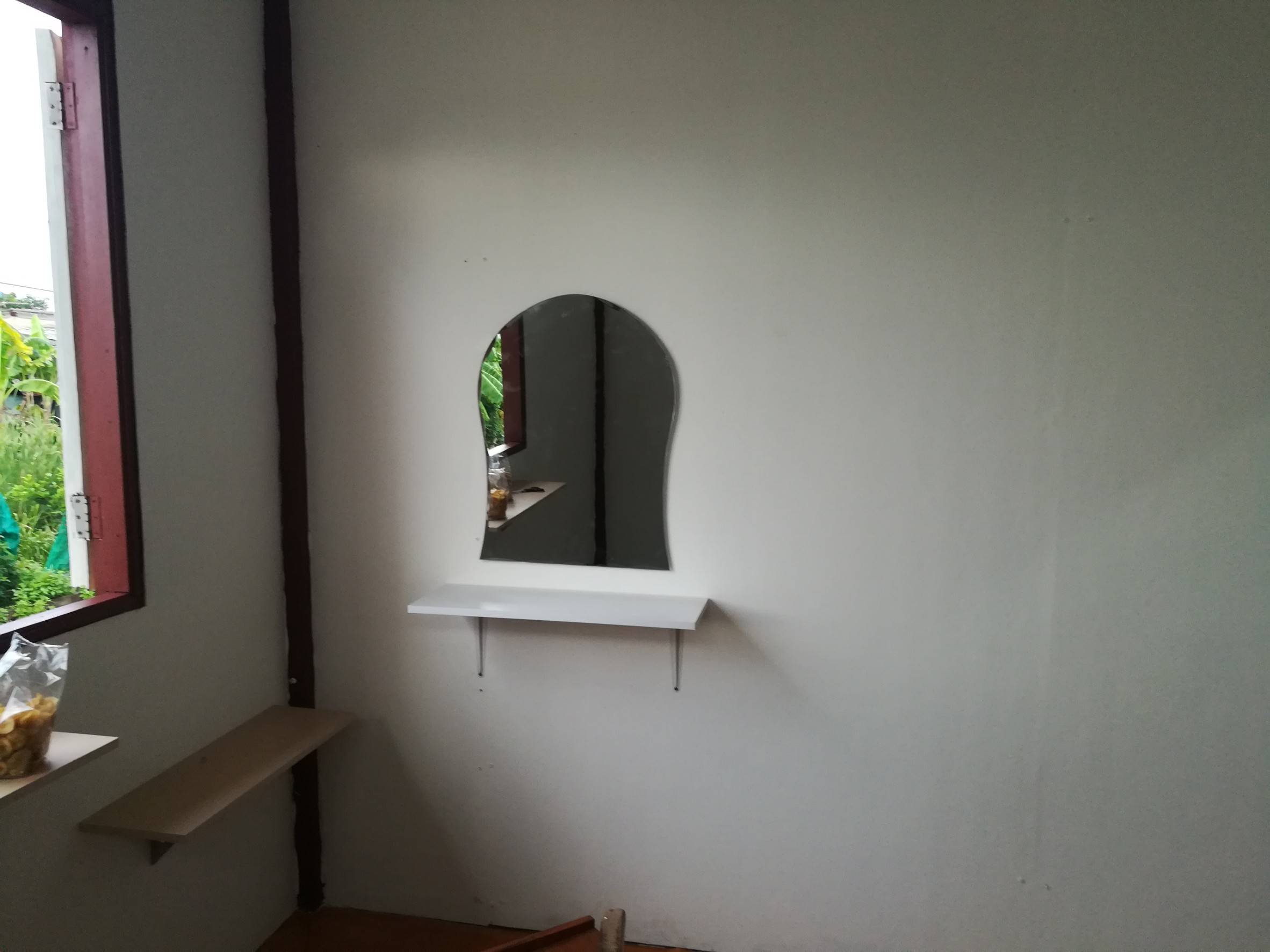 ได้กระจกมา 1 บานราคาด้วย ถูกมากก 190 อุปกรณ์ติดตั้งพร้อม ซื้อมาติดววันนั้นเลย อ้อ ใต้กระจกเราติดชั้นเล็กไว้วางของด้วยนะ