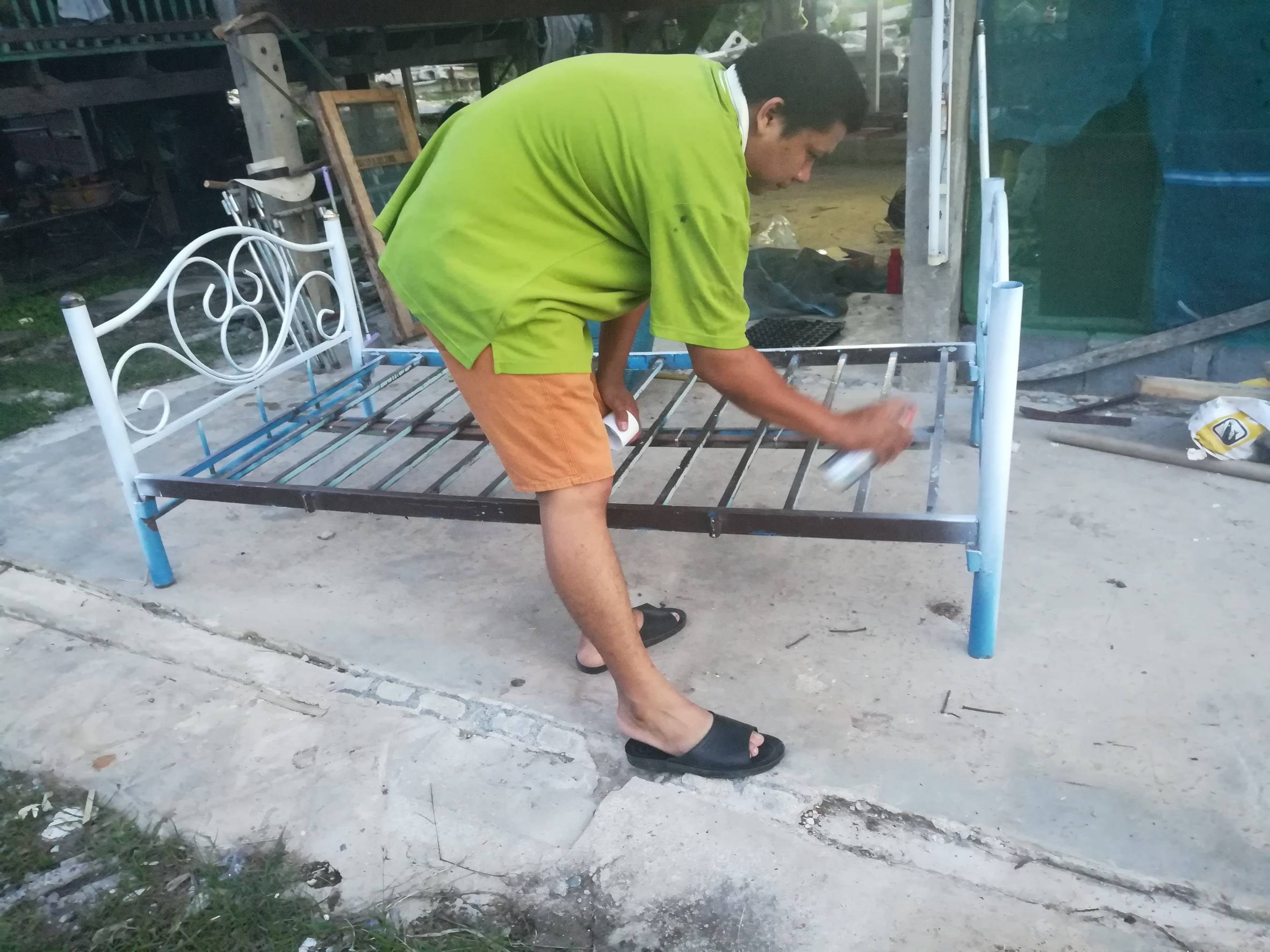 ส่วนเตียงเก่า เราไม่ได้ซื้อใหม่หรอกนยะเปลืองตัง เราเอาเตียงเก่ามาพ่นสีขาวให้หมด