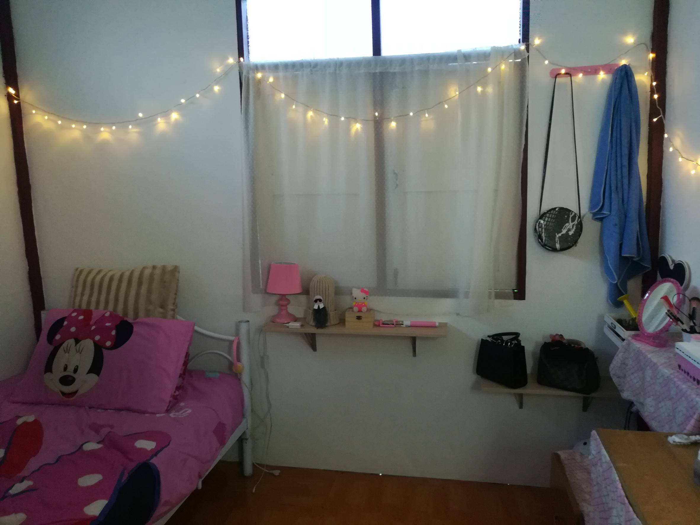 จากนั้นเราก็ติดผ้าม่าน ตอนแรกดูผ้าม่านจากอิเกีย ม่านโปร่งสีขาว 179 บาทมั้ง แต่ซื้อหลายอันกว่าหลายบาทนะ555 เอาไงละ ยังไงก้ต้องมีม่านสีขาวอะ ไม่งั้นไม่ยอม 555 สุดท้ายลากแม่ไปเดินตลาดจ้า ได้ผ้าเมตรมา เมตรละ35 บาท 4 เมตร ผ้าโปร่งสีขาว เย็บเองด้วย งกสุดๆ 555