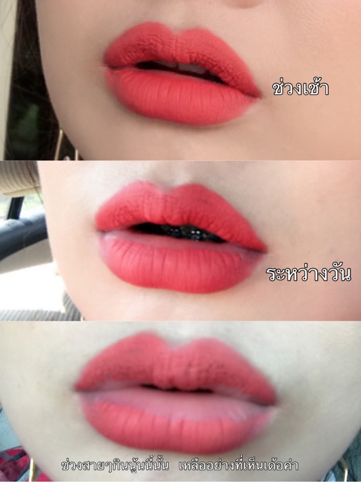 ข้อเสีย: ยิ่งทาซ้ำ ยิ่งรู้สึกหนักปาก(ดูเหมือนปากหนาาาา)แบบบอกไม่ถูก และต้องทาดีๆนะจ้ะไม่งั้นเป็นคราบอย่างที่เห็น ต้องพกเพื่อทาซ้ำระหว่างวันไม่งั้นดับจ้ะดับ ดับชีวิตได้เลยจ้ะ