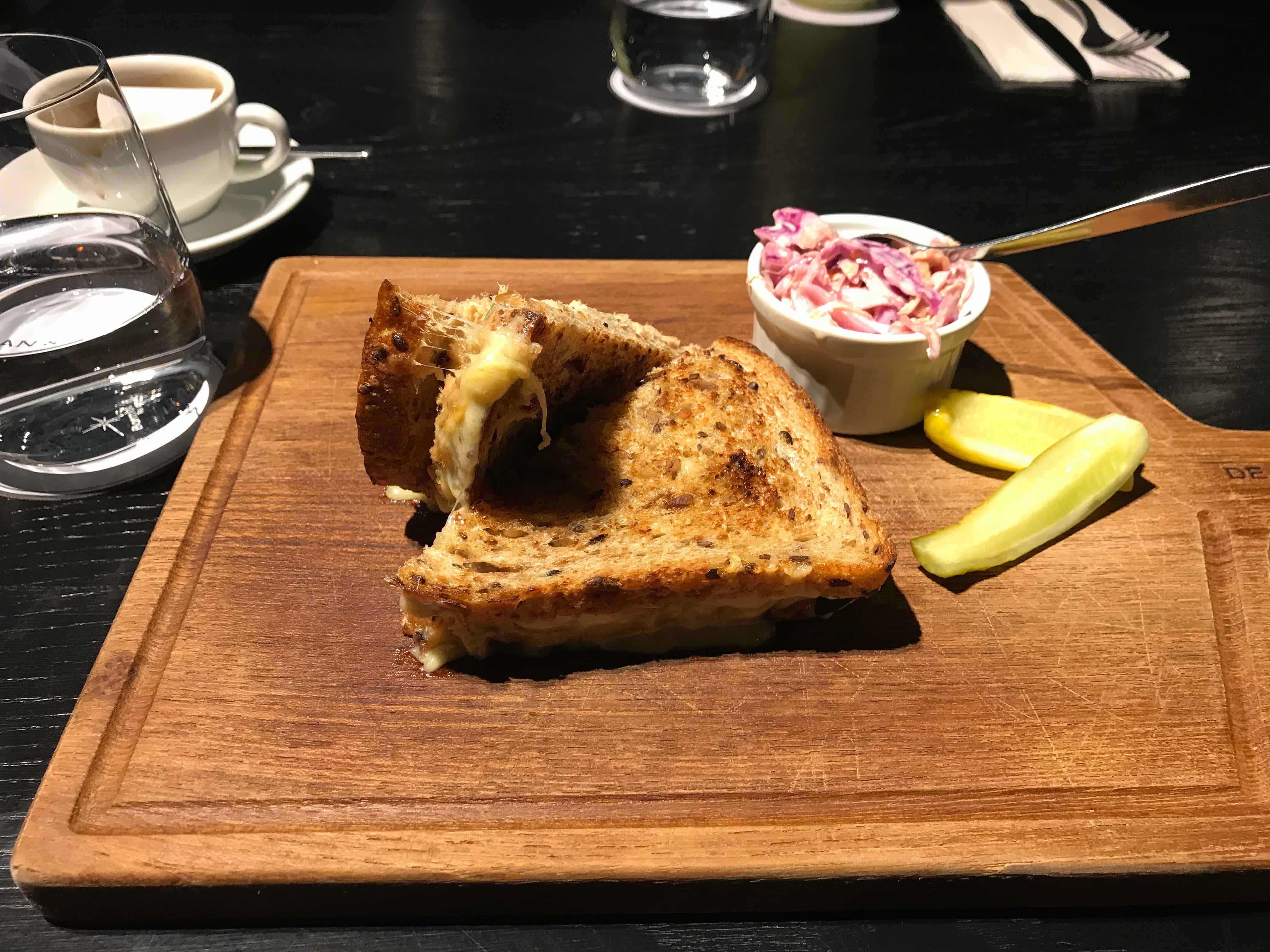 อันนี้จานของแมวดำเอง เป็น Tuna Melt แซนวิชทูน่าข้างในผสมด้วยชีสสามชนิด (ที่นี้แซนวิชอร่อยทุกรายการ ไม่ว่าจะเป็นหมู ไก่ เนื้อ หรือแบบมังสาวิรัติก็ตาม) เสิร์ฟมาพร้อมสลัดกะล่ำปลีม่วงและแตงกวาดอง (สองอันนี้ก็อร่อย)