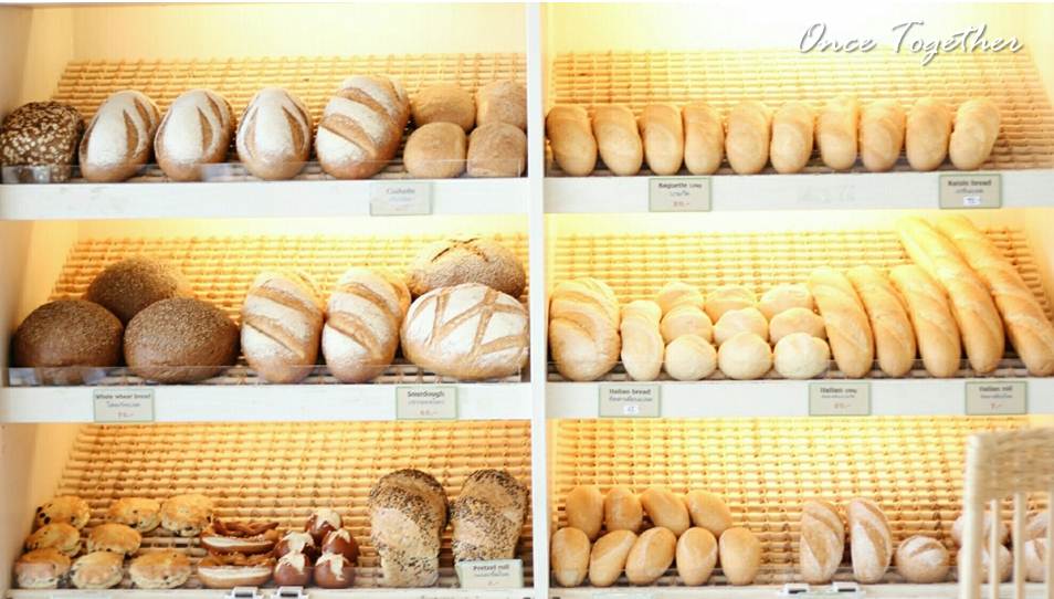 ‘Love bread’ เราตัดสินใจเลี้ยวรถเข้าสู่ร้านขนมปังฝรั่งเศสร้านนึงที่ตั้งอยู่ทางผ่านเข้าหาดชะอำ เราได้รับการต้อนรับด้วยคำทักทายและรอยยิ้มจากพนักงานหน้าใส บรรยากาศภายในร้านเน้นสไตล์เรียบง่าย สามารถเดินเลือกซื้อขนมปังเองได้ด้วย เราตกใจตอนเดินไปที่ชั้นวางขนมปังแล้วเห็นว่าบางชิ้นราคาแค่ 7 บาท