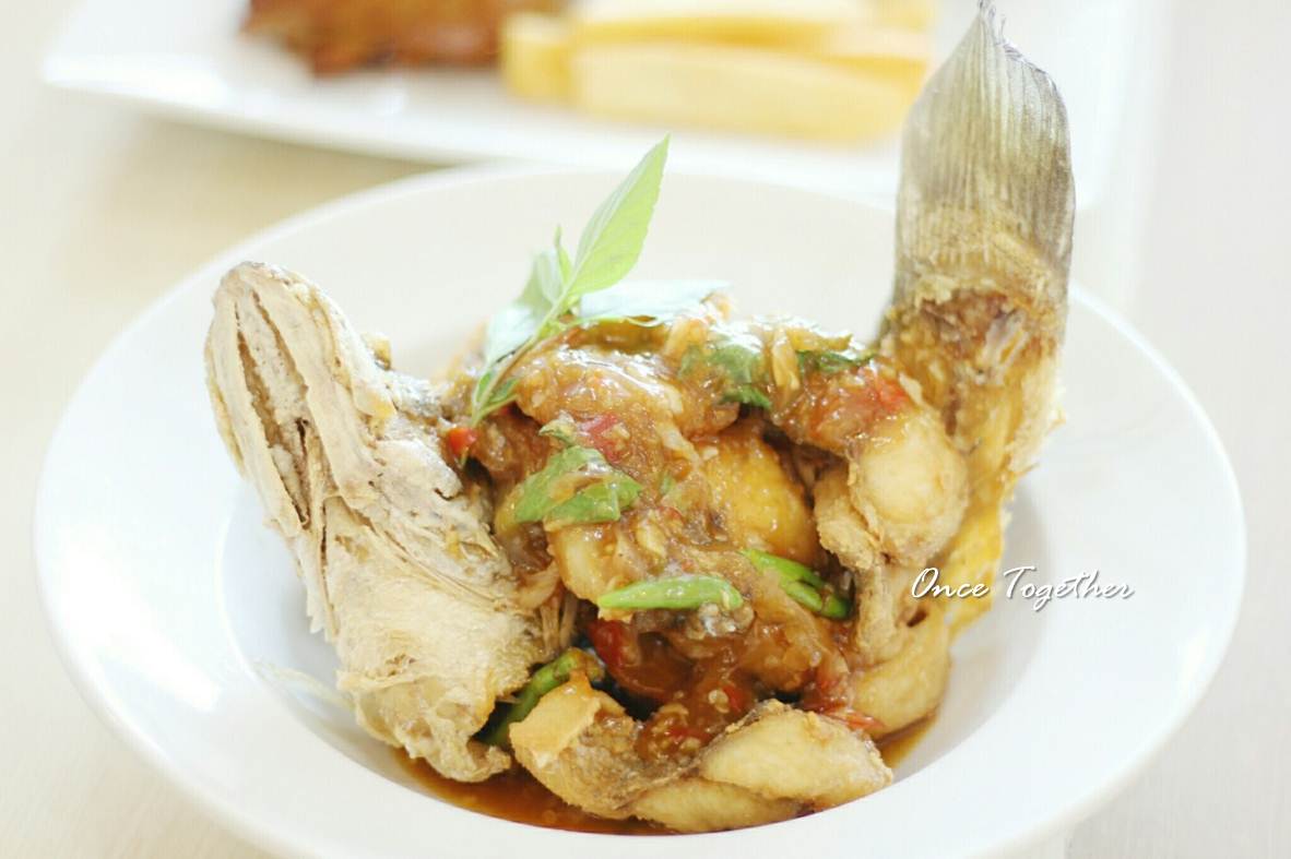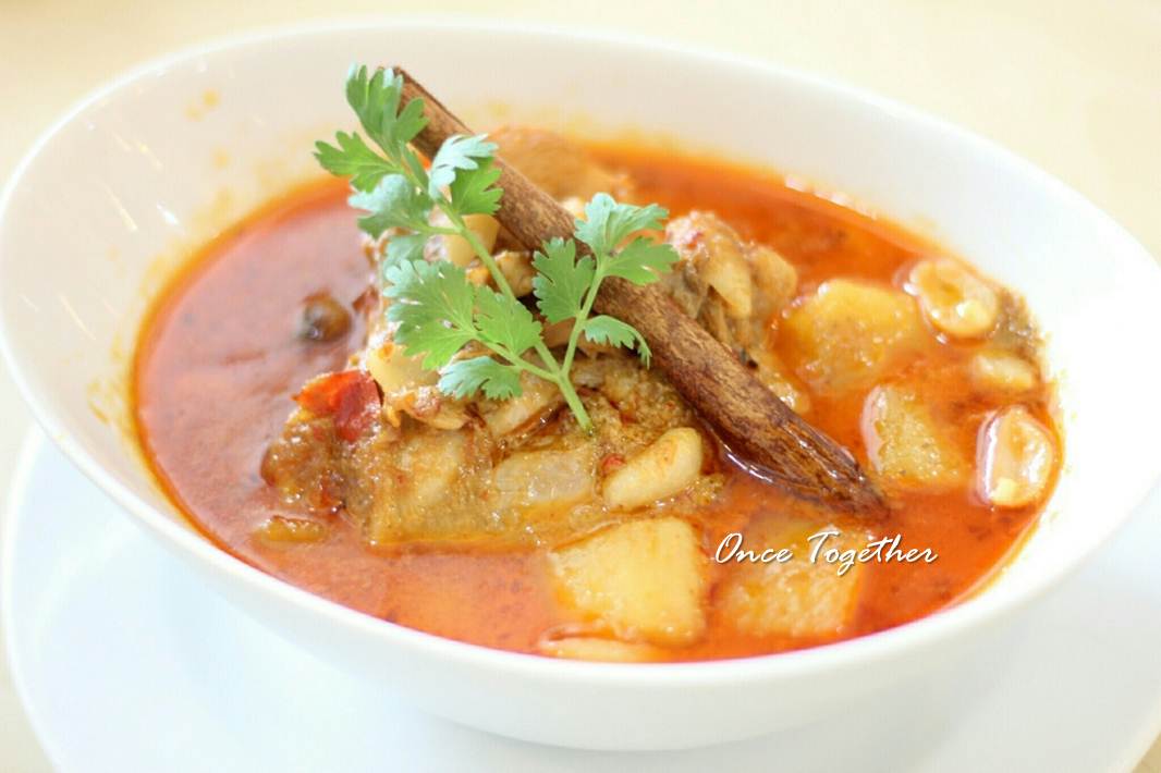 เราก็เลยต่อไม่ยั้งด้วยปลากระพงสามรสราดซอสสไตล์วินเทจรสจัดจ้านแบบชาวประมง ให้ความรู้สึกถึงกลิ่นอายความเป็น local อย่างแท้จริง ลองกินพร้อมแกงมัสมั่นไก่ที่ตุ๋นนานกว่าชม.ก็อร่อยไปอีกแบบ