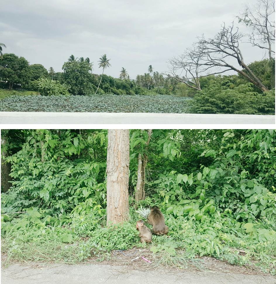 เช้าวันรุ่งขึ้นจากที่พักใกล้หาดชะอำ เราขับรถไปที่อำเภอท่ายางเพื่อไปโครงการชั่งหัวมัน โครงการตามพระราชดำริของในหลวงรัชกาลที่ 9 สถานที่แรงบันดาลใจบนขวดนมขวดเล็กๆเพียงขวดเดียว ขณะขับรถไปภาพที่ปรากฏสองข้างทางเมื่อเริ่มเข้าอำเภอท่ายาง เป็นบรรยากาศที่ดูร่มรื่นเย็นสบาย เห็นเจ้าจ๋อออกมาโชว์นั่งกินผลไม้ จนเราต้องเปิดกระจกแชะภาพนางแบบที่ออกมาอวดหุ่นไว้ซะหน่อย ช่วงหนึ่งเจอสะพานข้ามแม่น้ำเพชรบุรีเห็นใบบัวสวยเกลื่อนท้องน้ำเหมือนกำลังต้อนรับด้วยพรมบัวเชื้อเชิญให้เราลงไปเดินเล่น นี่ขนาดว่าดอกไม่ออกยังสวยขนาดนี้ ไม่อยากจะคิดว่าถ้าได้ออกมาชูช่อจะสวยแค่ไหน
