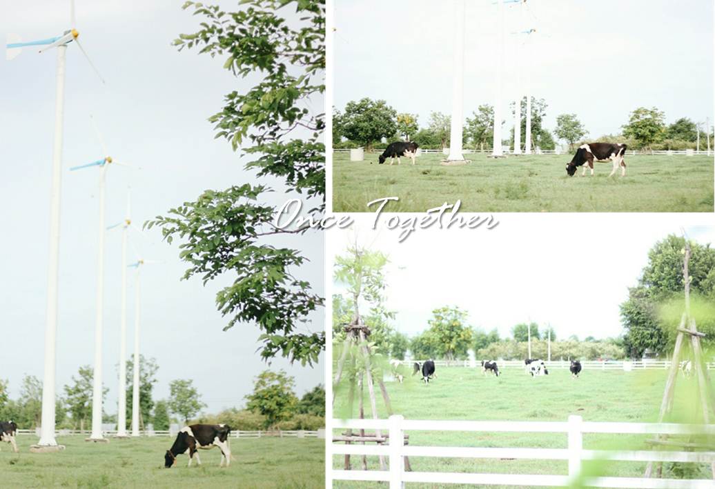 และแล้วเราก็เดินมาถึง ทุ่งกังหันลม กังหันวิเศษที่สามารถผลิตกระแสไฟฟ้าใช้ได้ภายในโครงการ ภาพที่อยู่ตรงหน้าเราตอนนี้เหมือนภาพที่อยู่บนขวดนมไม่มีผิดเพี้ยน วัวนมตัวใหญ่กำลังกินหญ้าอยู่กันเป็นฝูงใต้ทุ่งกังหันลม ต่างจากในขวดก็ตรงที่วัวหันมายิ้มให้เราไม่ได้เท่านั้นเอง พวกมันกำลังสนุกสนานกับการแทะเล็มหญ้าอ่อนสีเขียวใต้ทุ่งกังหันลม ฟาร์มวัวจำลองนี้ไม่เหมือนกับฟาร์มวัวที่เราเคยเห็นในที่ไหนๆ เราสัมผัสได้ถึงความอบอุ่นอย่างบอกไม่ถูก เรารู้สึกขอบคุณที่พ่อหลวงได้ทิ้งโครงการดีดีอย่างนี้ให้กับเราได้ศึกษา ให้กับประชาชนเพื่อเป็นต้นแบบในการดำเนินชีวิต