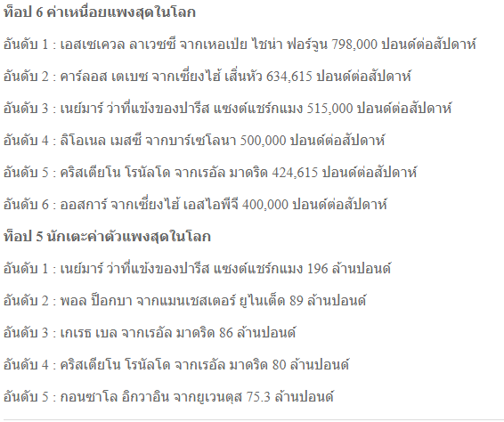 มาดู นักเตะ ค่าตัว ค่าเหนื่อย แพงที่สุดในโลกล่าสุด