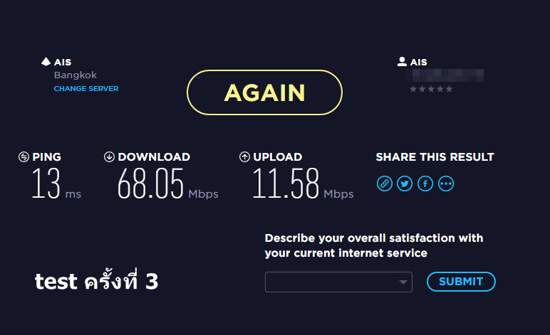 AIS FIBRE ความเร็วเน็ตวิ่งอยู่ครึ่งเดียว