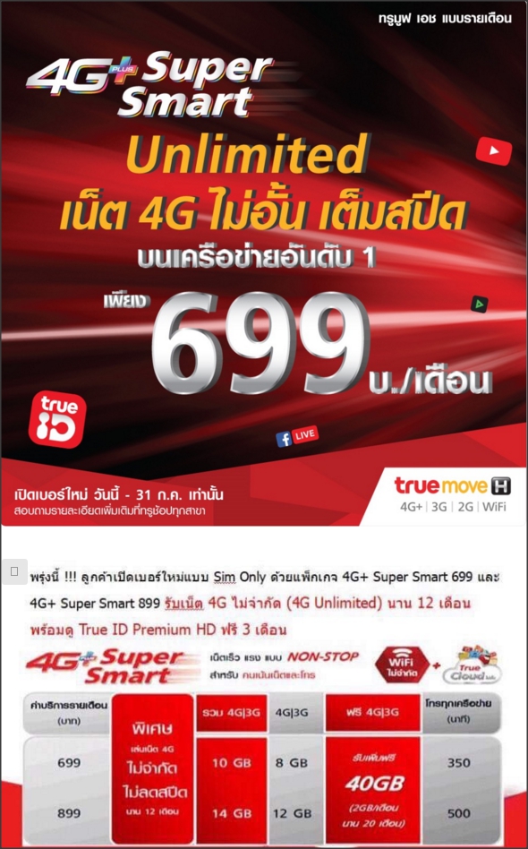 โปรโมชั่น 4G+ Super Smart Unlimited 699 หายไปไหนครับ