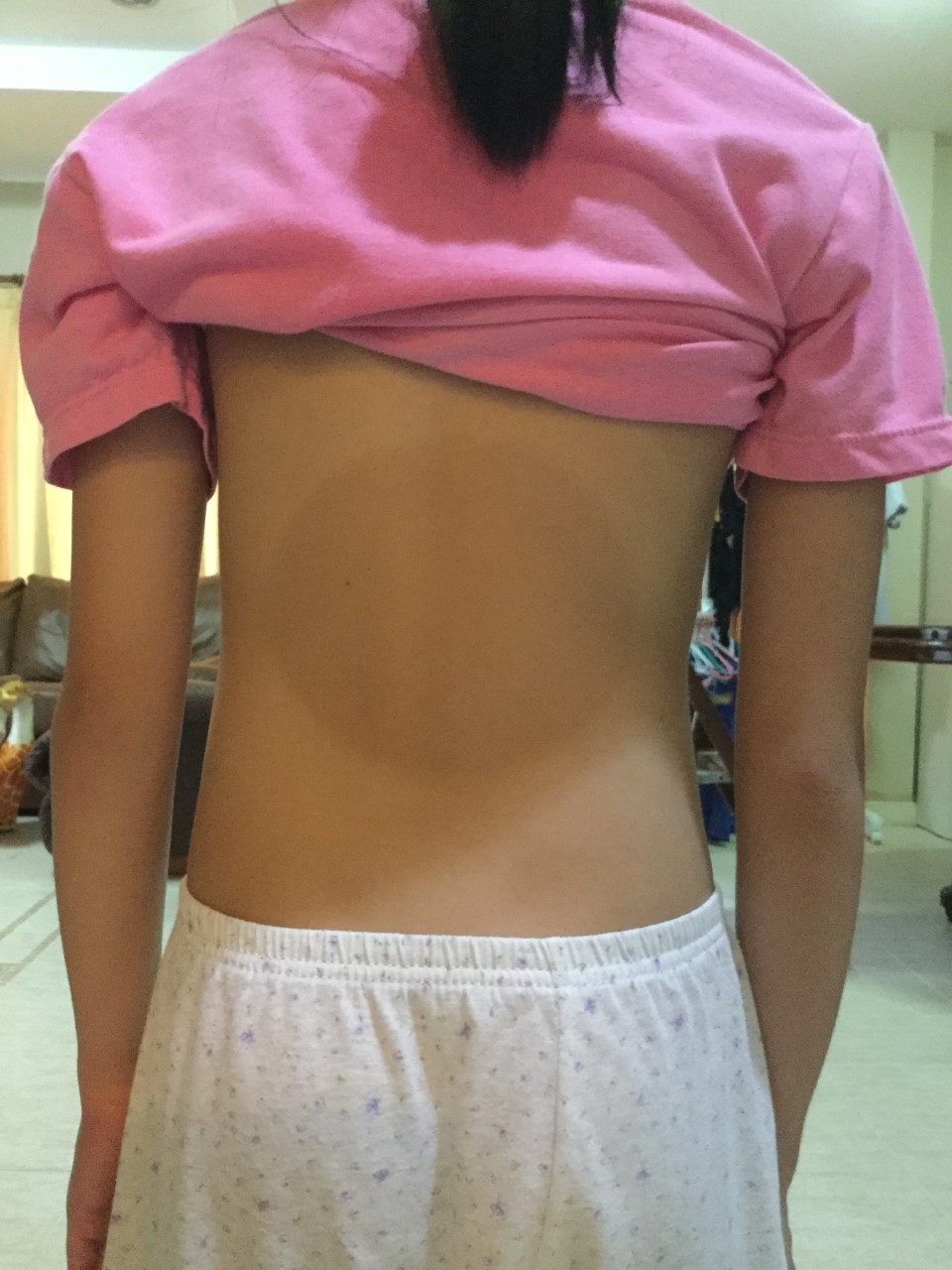 ดูคล้าย ๆ โดนแดดเผา แต่ลูกสาวไม่ได้ถอดเสื้อโดนแดดเลย ถามว่าไปนั่งพิงอะไรมาหรือเปล่า