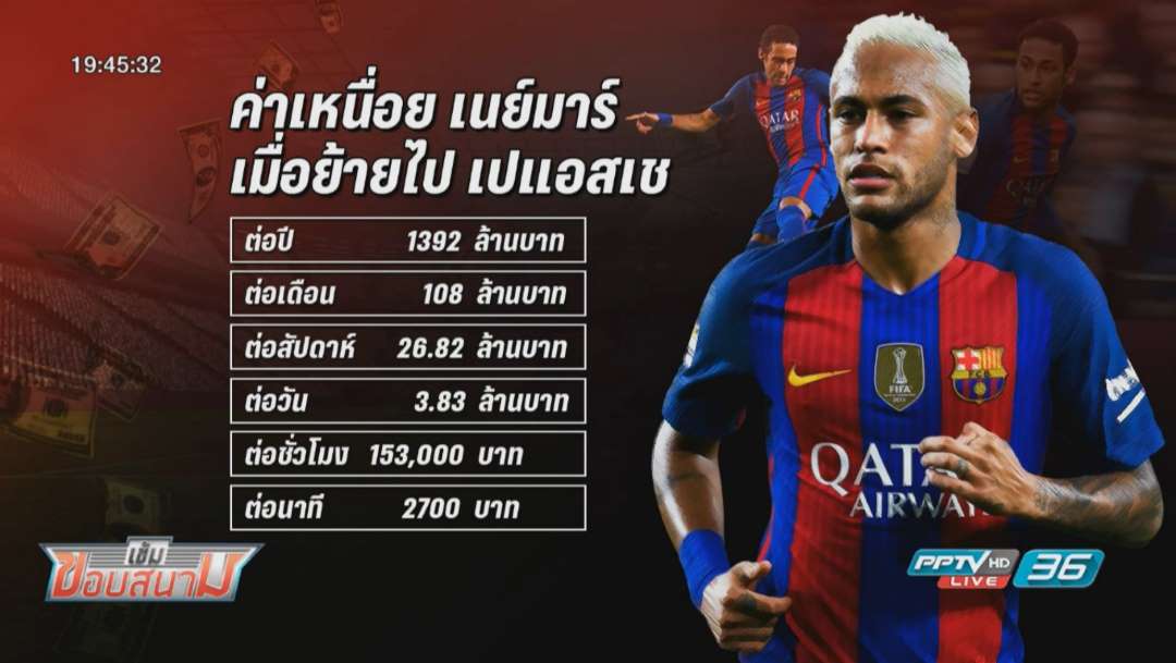ค่าเหนื่อย “เนย์มาร์” แซงขึ้นอันดับ 3 ของโลก