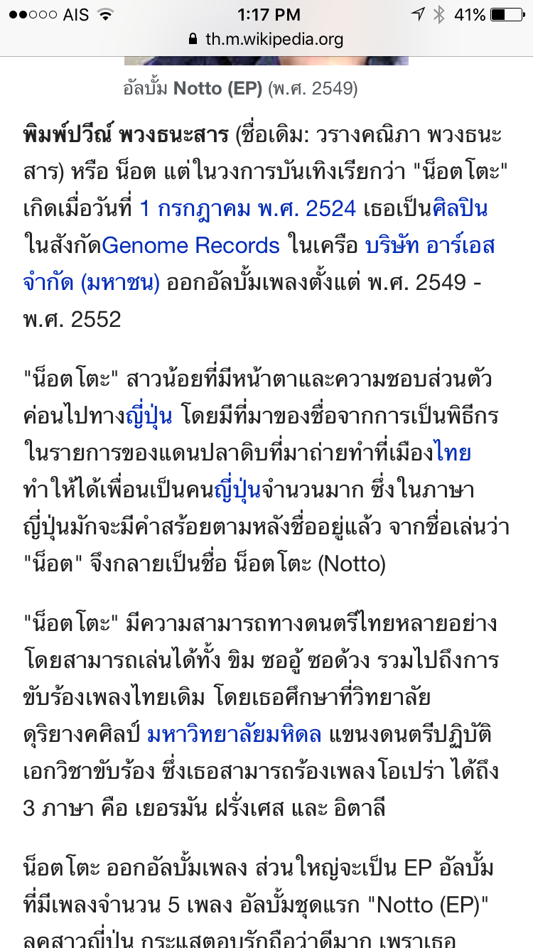 โปรไฟล์ของนักร้องหญิงคนนึงคือ นอตโตะ ครับ