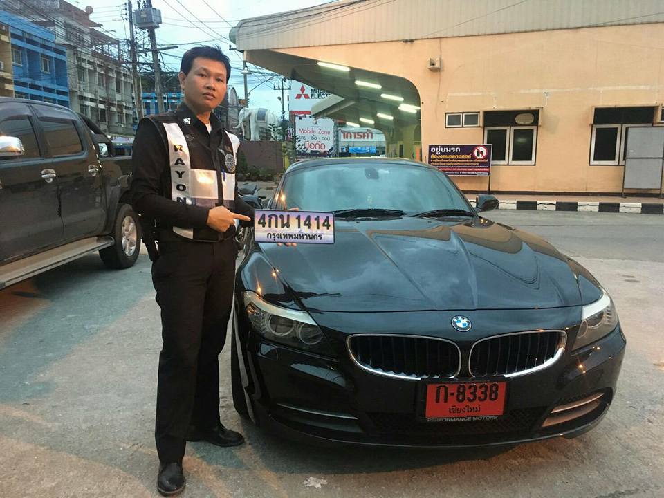 ล่าสุด พ.ต.อ.ดำรงค์ อ้วนสูงเนิน ผกก.สภ.เมืองระยอง พ.ต.ท.คมสรร คำตุ่นแก้ว รอง ผกก.ป.สภ.เมืองระยอง พ.ต.ท.ธนเดช ชมเชี่ยวชาญ สวป., ร.ต.ท.สุโรม แก้วใส รอง สวป. พร้อมกำลังสายตรวจชุด 3 ตั้งจุดตรวจสกัดสิ่งของผิดกฏหมาย และป้องปรามเด็กแว้นแข่งขันรถในทาง บริเวณถนนสาย 36 (พัทยา-ระยอง) บริเวณหน้าปั้มน้ำมันเชลล์ ก่อนถึงแยกบ้านดอน ต.เชิงเนิน อ.เมืองฯ จ.ระยอง ตรวจพบรถยนต์บีเอ็มดับเบิลยู สีดำ ติดทะเบียนป้ายแดง ก 8338 เชียงใหม่ ซึ่งมีนายมีชัย ทรงเหล็กสิงห์ อายุ 33 ปี อยู่บ้านเลขที่ 12 หมู่ 9 ต.บางกรวย อ.บางกรวย จ.นนทบุรี เป็นคนขับมีท่าทางพิรุธต้องสงสัย จึงเรียกตรวจค้น พบป้ายทะเบียน 4 กน 1414 กทม. 2 แผ่น ซุกซ่อนอยู่ในถุงกระดาษใต้เบาะฝั่งคนขับ ตรงกับที่มีผู้แจ้งหายไว้ ที่ สภ.คูคต จ.ปทุมธานี จึงประสานเจ้าของรถมาตรวจสอบ พร้อมควบคุมตัวนายมีชัยดำเนินคดี เบื้องต้น นายมีชัย รับสารภาพว่า ได้รับว่าจ้างจากหญิงสาวที่ชื่อ "ทอม" ไม่ทราบชื่อและนามสกุลจริง ให้ขับรถคันดังกล่าวจากกรุงเทพฯ โดยนัดหมายรับรถที่ลานจอดรถห้างสรรพสินค้าเทสโก้ โลตัส สาขาจันทบุรี แต่มาถูกจับกุมดังกล่าว