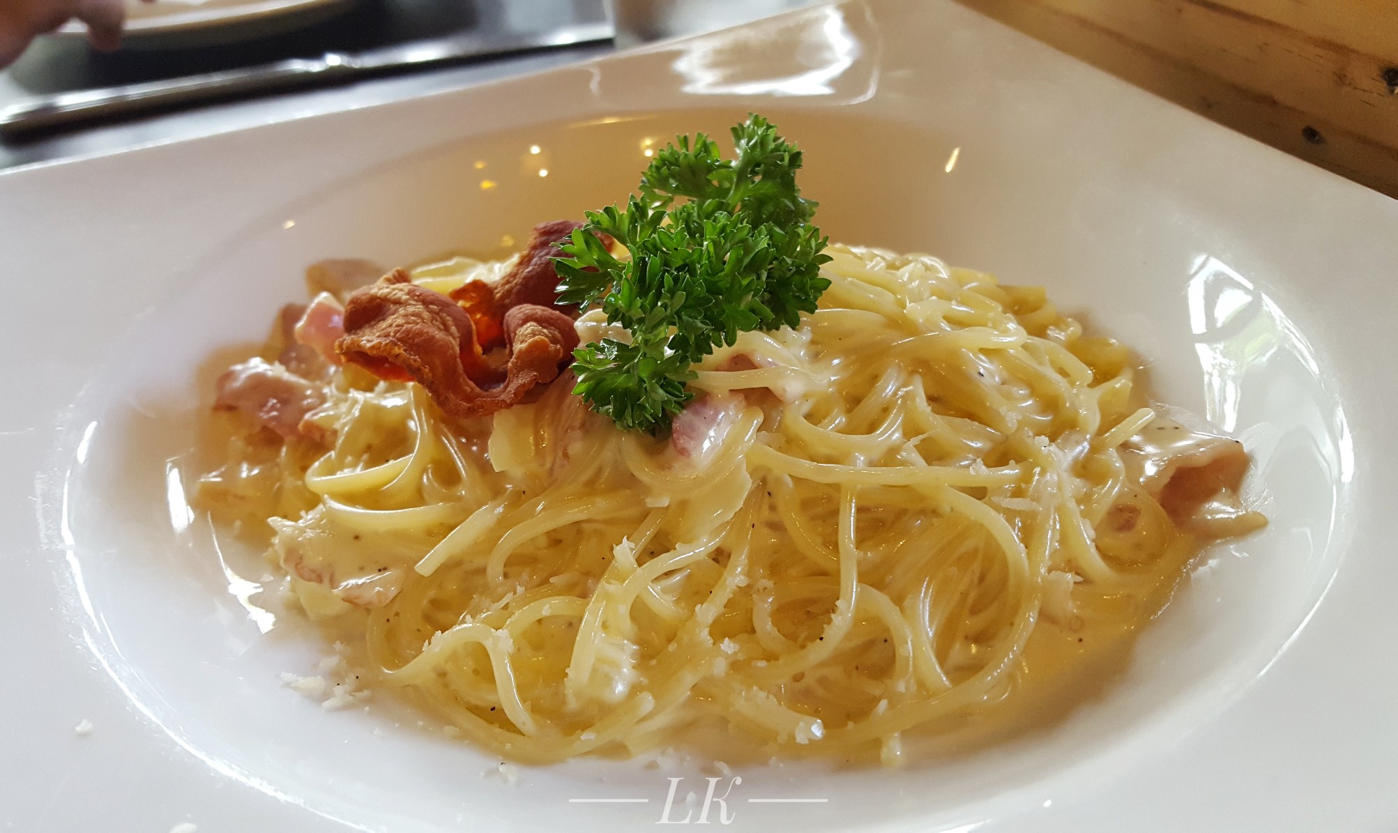 ส่วนพวกพาสต้ากับสปาเก็ตตี้ก็รสชาติดี กลมกล่อมค่ะ ปลาแซลม่อนอร่อย ยำเปรี้ยวนำไปนิด แต่โดยรวมรสชาติดี วัตถุดิบดีจ้า ราคาอาหารมีตั้งแต่ 100 กว่าบาทขึ้นไปค่ะ เมนูธรรมดาทั่วๆไปเฉลี่ยอยู่ที่จานละ 200 บาทโดยประมาณนะจ๊ะ^^