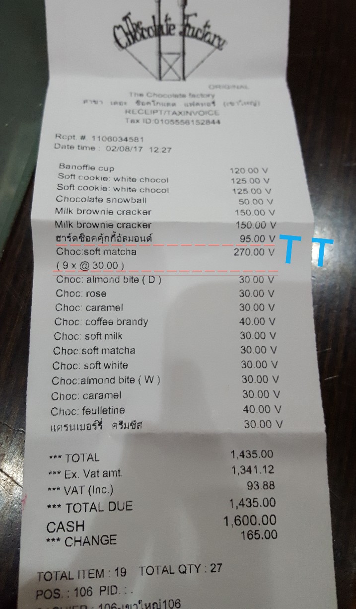 ที่ขีดไว้ในภาพคือรายการที่พนักงานคิดเงินเกินไปตั้ง 270 บาทแน่ะ ฮือๆๆๆๆๆ แต่พวกเราสะเพร่าเองแหละที่ไม่เชคให้ดีก่อนออกจากร้าน มารู้ตัวอีกทีก็ไปไกลละ ย้อนกลับไปก็คงไม่คุ้ม ยังไงไปซื้อของที่ไหนด็อย่าลืมเชคกันน้าาาา ฮืออๆๆๆๆๆ แต่ยังไงถ้ามีโอกาศก็จะแวะไปอุดหนุนอีกแน่นอน เพราะอาหารอร่อย ขนมอร่อย ถูกใจฝุดๆ 555
