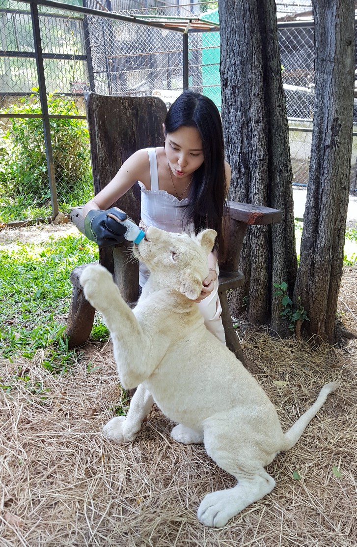 ดาวเด่นของสวนสัตว์ก็เจ้าตัวนี้เลย ลูกเสือขาว อายุ 8 เดือน สามารเข้าไปป้อนนมในกรงได้ค่ะ นมขวดละ 150 บาท อนุญาตให้เข้าไปได้ครั้งละ 2 คนค่ะ มีเจ้าหน้าที่ดูแลใกล้ชิด ไม่ต้องกลัวนะ น้องดูเป็นมิตร ฉลาดด้วย พอเห็นคนเดินไปซื้อนมก็รีบเดินป้วนเปี้ยนรอเลย 555