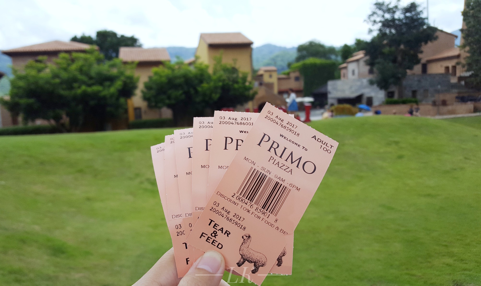 มาถึงก็ซื้อตั๋ว จ่ายค่าเข้าไปตามระเบียบ ผู้ใหญ่คนละ 100 บาท เด็ก 50 บาทค่ะ ตั๋วนี้เอาไปแลกหญ้าให้อาหารสัตว์ที่ฟาร์มด้านในได้ด้วยนะคะ