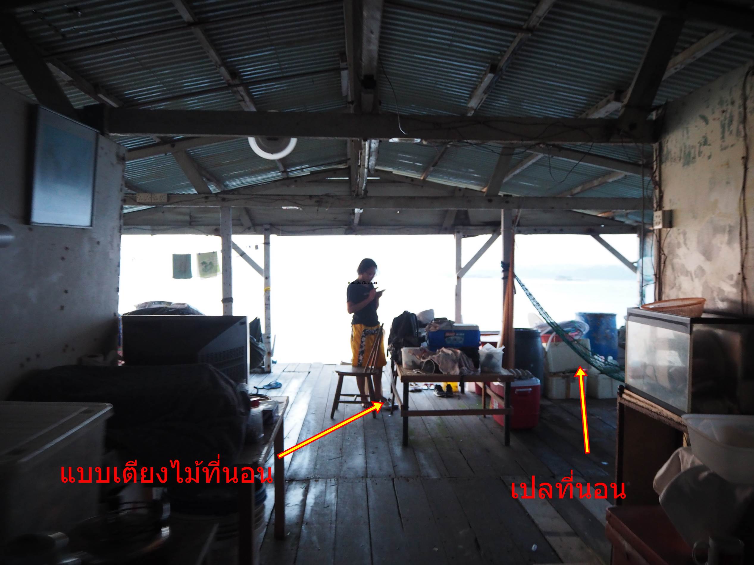 ธรรมชาติมีความสวยงามในตัวของมันเอง แต่มนุษย์ที่อยากจะลองไปนอนกลางน้ำนั้น ต้องปรับตัวให้ได้ค่ะ คือด้วยความที่มันเป็นบ้านแพลอยน้ำจริง และเป็นหลังเล็กที่ปลักหลักตั้งถิ่นฐาน อยู่ในทะเลกว้าง เมื่อเมีคลื่นซัดผ่านมา ก็จะต้องเจอกับความโคลงเคลงของบ้านที่นอน และสิ่งที่เรานอนคืนนี้ คือเปลค่ะ คือเค้ามีเตียงไม้ และก็ฟูก พี่กับน้องเรา นอนบนนั้น ส่วนเรานอนบนเปลที่เค้าผูกไว้ คืออย่าได้คิดว่าเราจะได้นอนแพหรูๆ ดีๆ เหมือนตอนไปเที่ยวแพเมืองกาญอะไรอย่างนั้นนะค่ะ ที่นี่คือบ้านประมงค่ะ ไม่ใช่ สถานที่ท่องเที่ยว กว่าจะผ่านคืนนั้นไปได้นี่ บอกเลยต้องใช้ความทรหดอดทนที่สูงมาก คลื่นซัดมาที ก็โคลงที ทั้งบ้าน ทั้งเปลที่นอน โอ้ยยย แบบตื่นทุก 2-3 ชม. นอนไม่หลับกันเลยทีเดียว