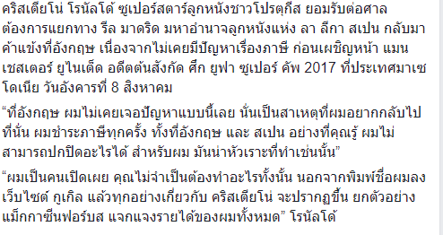 **Real Madrid News** เกาะติดความคืบหน้า "คริสเตียโน่ โรนัลโด้" ขึ้นให้การต่อศาลในคดีหลบเลี่ยงภาษีที่สเปน 31/07/17