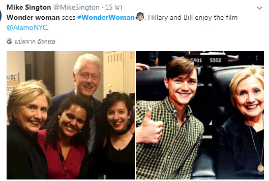 เมื่อวันที่ 6 สค. ที่ผ่านมา ฮิลลารี่ และบิล คลินตัน พร้อมกับแขกผู้ติดตาม ได้เดินทางมาที่ Alamo Drafthouse โรงภาพยนต์ในแถบบล็คลิน เพื่อชมภาพยนต์ wonder woman ซึ่งจัดฉายรอบพิเศษให้กับคณะของเธอ
