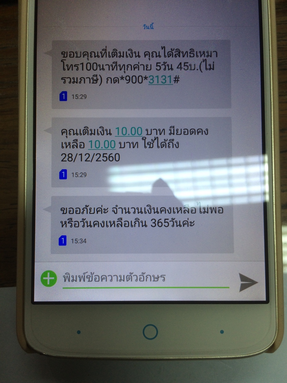 ผมเงินเข้า ture เบอร์ จำนวน 10 บาท แล้วกดเติมวัน ระบบแจ้งเติมวันไม่สำเร็จตามรูป
