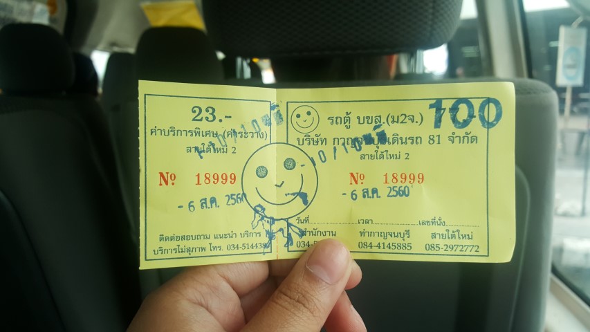 เริ่มต้นด้วยการซื้อตั๋วรถตู้ที่สายใต้ใหม่ เส้นทาง สายใต้ใหม่ - กาญจนบุรี ในราคา 100 บาทถ้วน