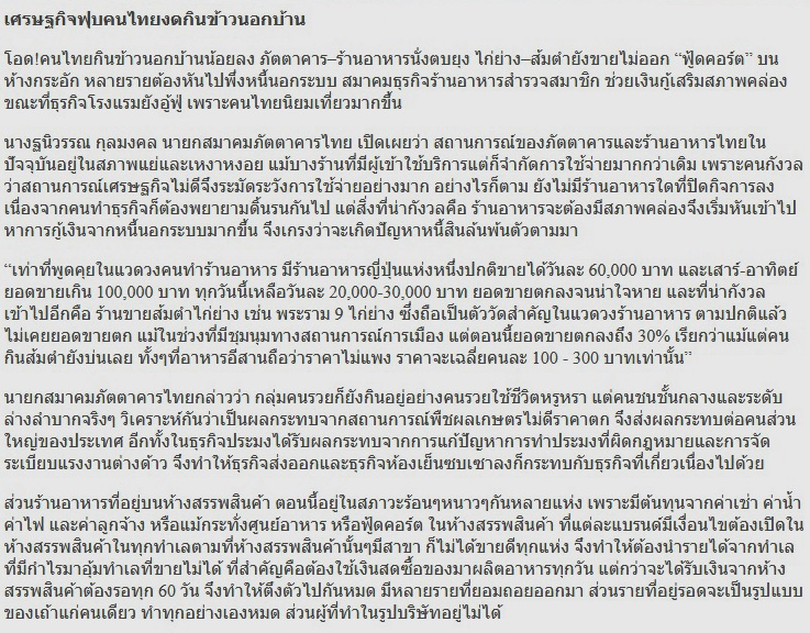 เศรษฐกิจฟุบคนไทยงดกินข้าวนอกบ้าน เรื่องมโนของคนกลุ่มเดิมๆ แค่ดิสเครดิตลุงตู่ อยู่นานๆ