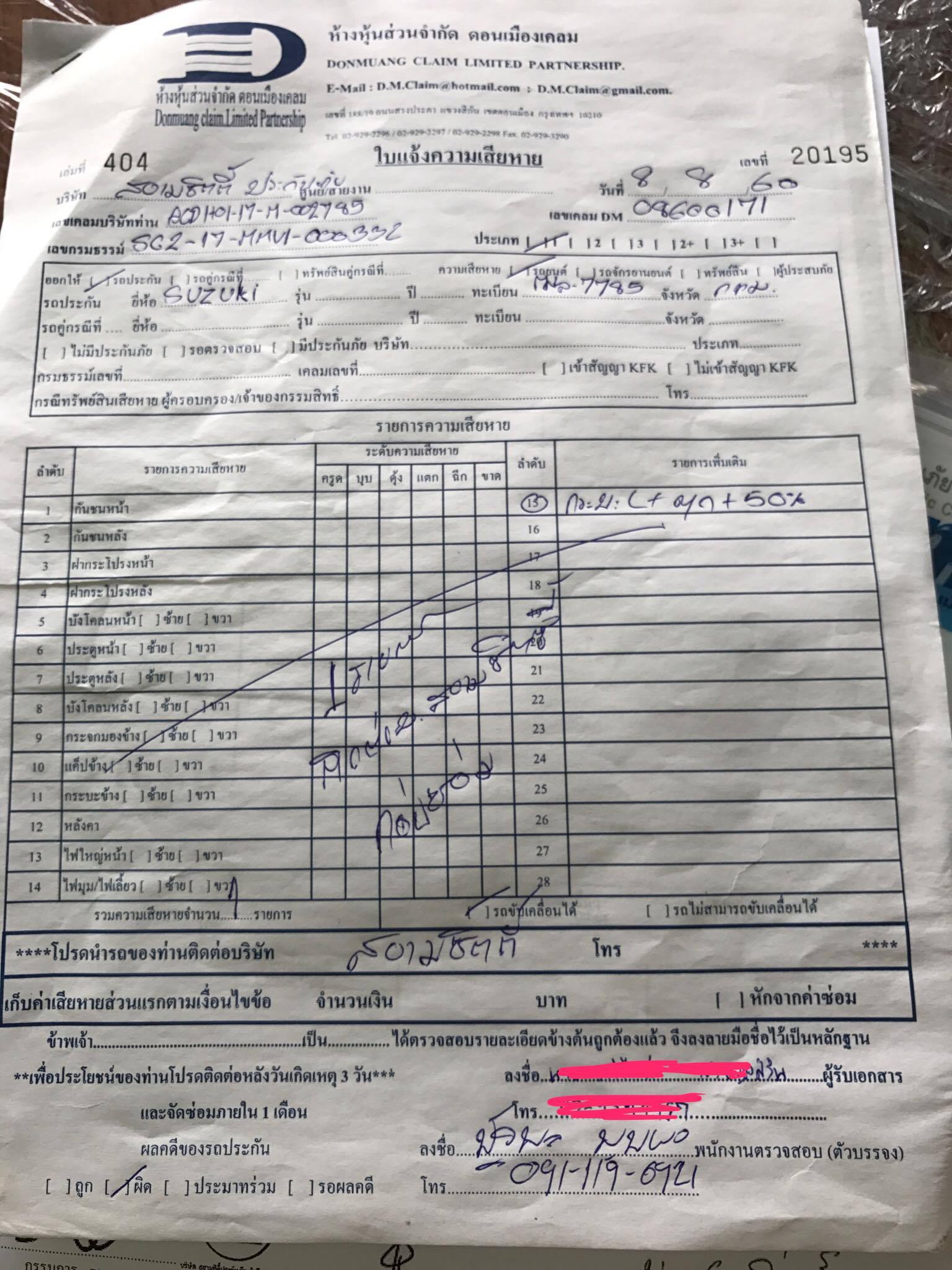 ซึ่งภายหลัง หลังจากที่ผมรู้เรื่องจึงโทรถามสำนักงานใหญ่ เจ้าหน้าที่บอกว่าทำเป็นจุดได้ ไม่เสียเพิ่ม แต่รถอาจไม่สวย(ก็รถใช้งาน) แต่พอย้ายอู่ทีนี้ใบเครมมันออกและเขียนไปแล้ว ว่าเราต้อง 50% ยอดมากครับ ประกันชั้น 1 รถแทบไม่เครม รอยเล็กน้อยไม่เคยเครม ขับระมัดระวัง
