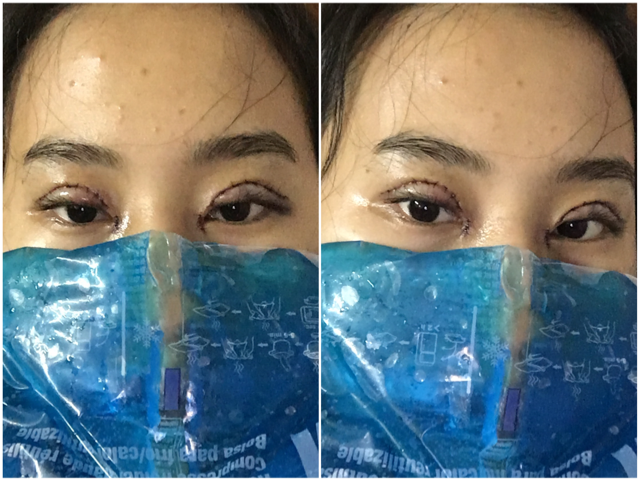 ภาพนี้เป็นภาพวันแรกหลังจากที่ทำเสร็จ และกลับถึงบ้านแล้ว (ต้องคอยประคบเย็นจะช่วยลดอาการบวมได้ค่ะ)