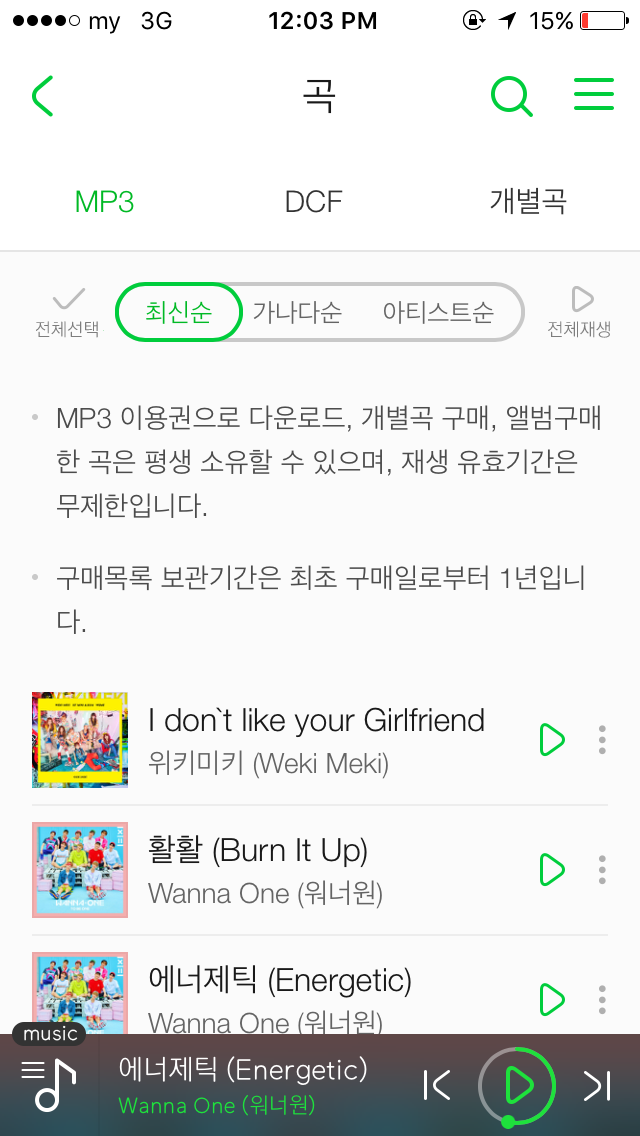 คือเราฟังเพลงใน Melon ค่ะ ตอนแรกก็สมัครแพ็คอันแรก 10.99$ ซึ่งมันโหลด MP3 ไม่ได้แต่โหลดเพลงออฟไลน์มาฟังได้ แต่เป็นไฟล์ที่เปิดได้เฉพาะ Melon เท่านั้น ทีนี้เราอยากลองสมัครแพ็ค 15.39$ ที่โหลด MP3 ได้ 30 เ