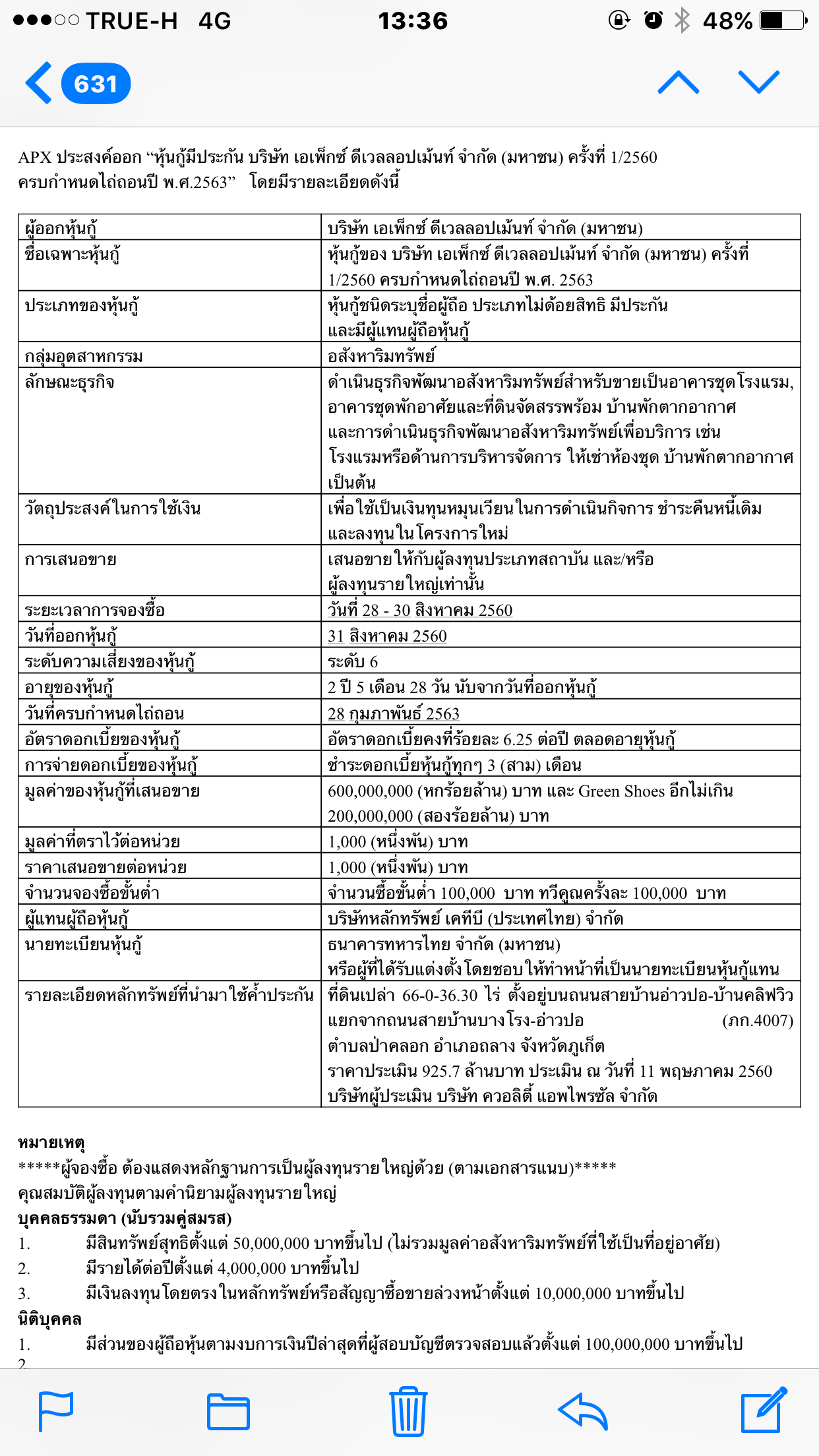 หุ้นกู้ APX อายุ 2.5 ปี ดอกเบี้ย 6.25 น่าเสี่ยงมั้ยครับ