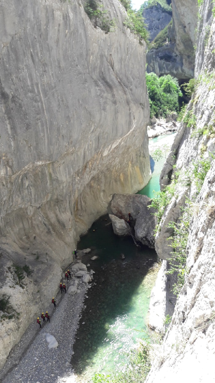 เรามาถึงเมือง Castellane เป็นวันที่ 7 ของทริป พักอยู่ รร. คืนหนึ่ง ขับรถไปเที่ยวทะเลสาป Lec de Castillon และเดินเที่ยวในตัวเมืองเสร็จแล้ว (รายละเอียดและภาพของเมืองนี้จะลงในอีกกระทู้) ก็เช็คเอ้าท์ออกไป Camping ใช่แล้ว Camping เห็นฝรั่งฮิตกันนัก ทริปนี้เลยจัด camping ด้วย 2 คืน ด้วยการเช่าเต้นท์ของทาง แคมป์ พอเช็คอินเรียบร้อยคนพาเที่ยวก็พูดขึ้นว่า "เดี๋ยวเราไปเดิน Canyon กันนะ เช็คดูคราวๆ ระยะทางก็ 15 km ตามตารางใช้เวลาประมาณ 6.30 ชม. - 7 ชม. ปะไปถามข้อมูลจจาก Information กัน" เราฟังแล้วก็สตั้นไปหนึ่งวิ แล้วเดินตามเขาไปต้อยๆ