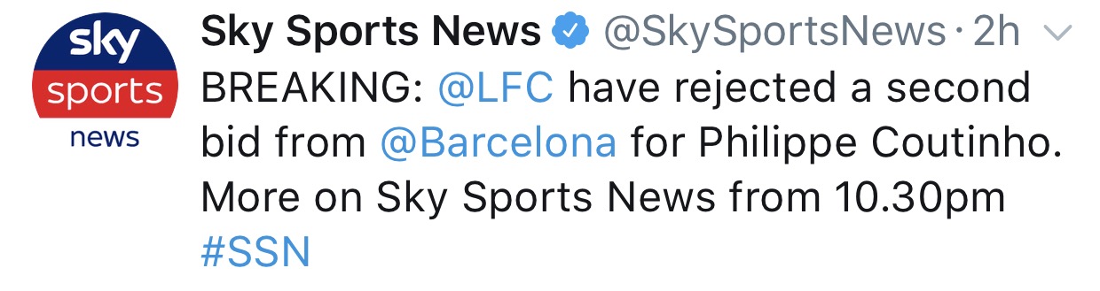 BREAKING ! Liverpool have rejected a second bid from Barcelona for P.Coutinho