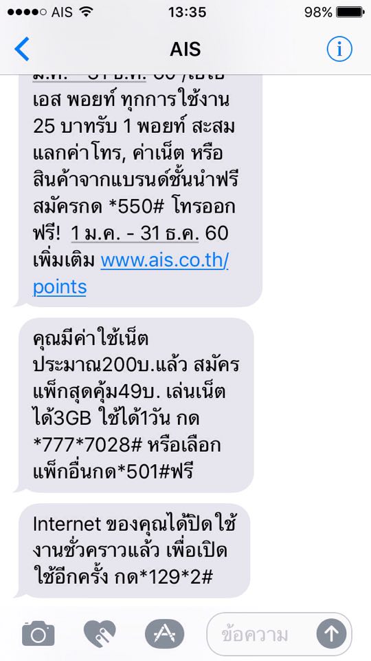 พอกลับมาเช็คดู เน็ตรั่วไป 273บ. แล้ว (ดูจาก SMS แจ้งว่าเน็ตหมดแล้วจน แจ้งว่าเกิน 200บ. ห่างกันประมาณ 15 นาที)