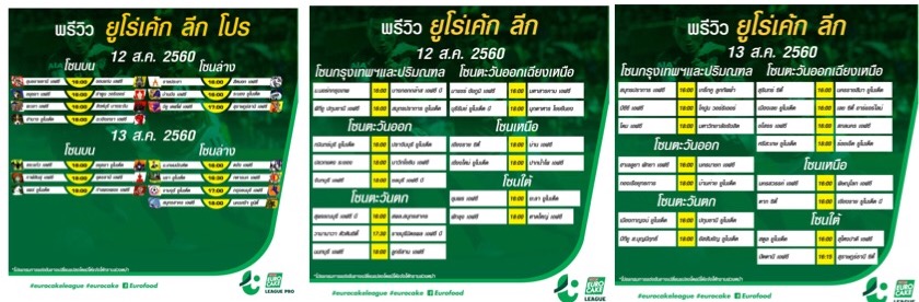 ขอบคุณข้อมูลจาก ยูโร่เค้ก ลีก ผู้สนับสนุนฟุตบอล ยูโร่เค้ก ลีก โปร และ ยูโร่เค้ก ลีก อย่างเป็นทางการ