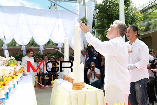 “เราไม่บน เราบวงสรวง บวงสรวงคือการกราบไหว้ เราไม่บน ไม่ขอ ท่านอยากให้อะไร ถึงเวลาจะได้ท่านให้เองแหละ ไม่ต้องไปขอหรอก ขอแทบตายถ้าทำไม่ดีท่านก็ไม่ให้ เพราะฉะนั้นอย่าขอ จริงๆ แนะนำนะครับเรื่องใดก็ตาม กราบไหว้บูชาไปเดี๋ยวเราได้สิ่งนั้นเอง เรื่องกำหนดฉาย กำหนดคือหลังจากที่ทำภาพยนตร์ ทำ CG เสร็จ ตัดต่อลงซาวนด์เรียบร้อย ปีหน้า”