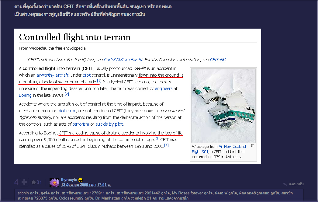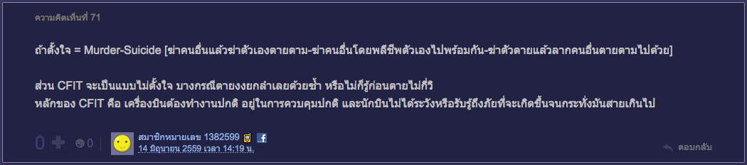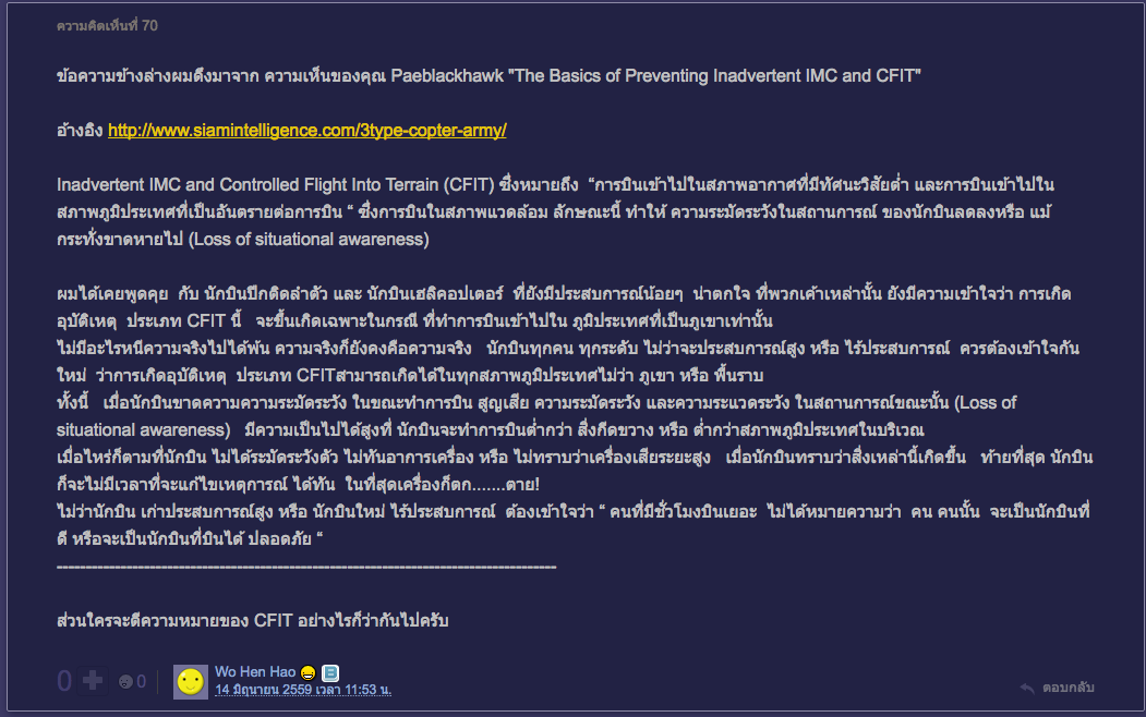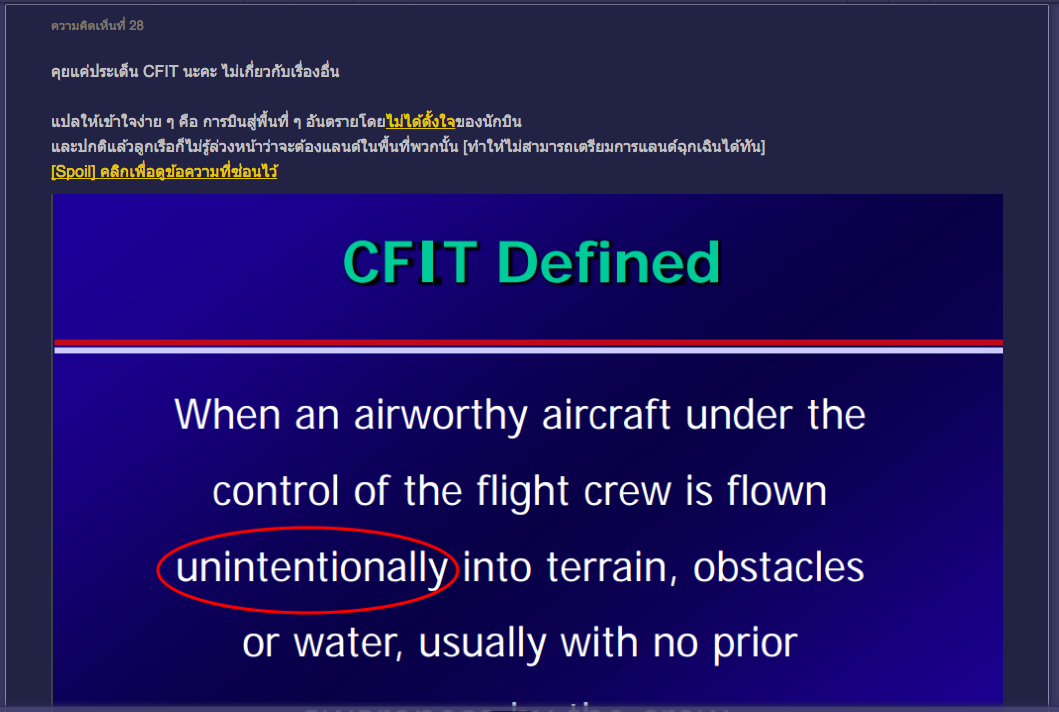 ทั้ง ๆ ที่ในกระทู้นั้น เราก็เขียนบอกไว้ชัดเจนว่า ไม่เกี่ยวกับเรื่องอื่น คุยเรื่อง CFIT อย่างเดียว