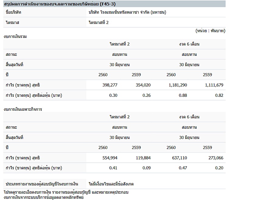 ผลประกอบการ PM Q2 / 2017 จ่ายปันผล ปันผลที่ผ่านมา