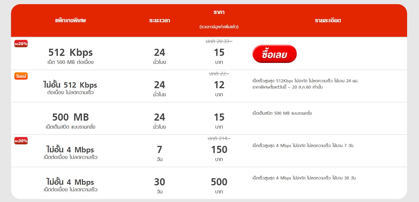 แพ็กเกจพิเศษ รายวันๆละ 12 บาท เน็ต 512kbps ไม่จำกัด เฉพาะ 12 - 20 สิงหาคมนี้